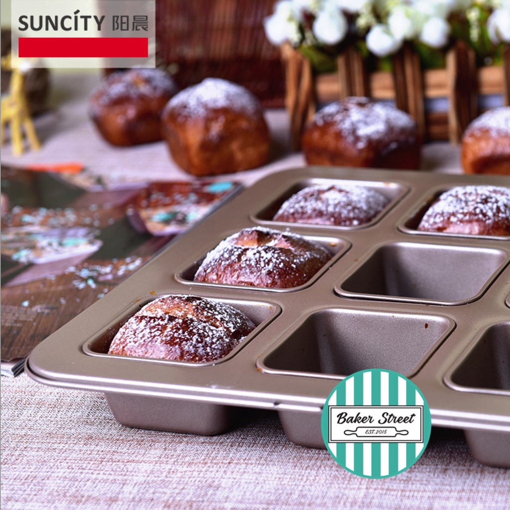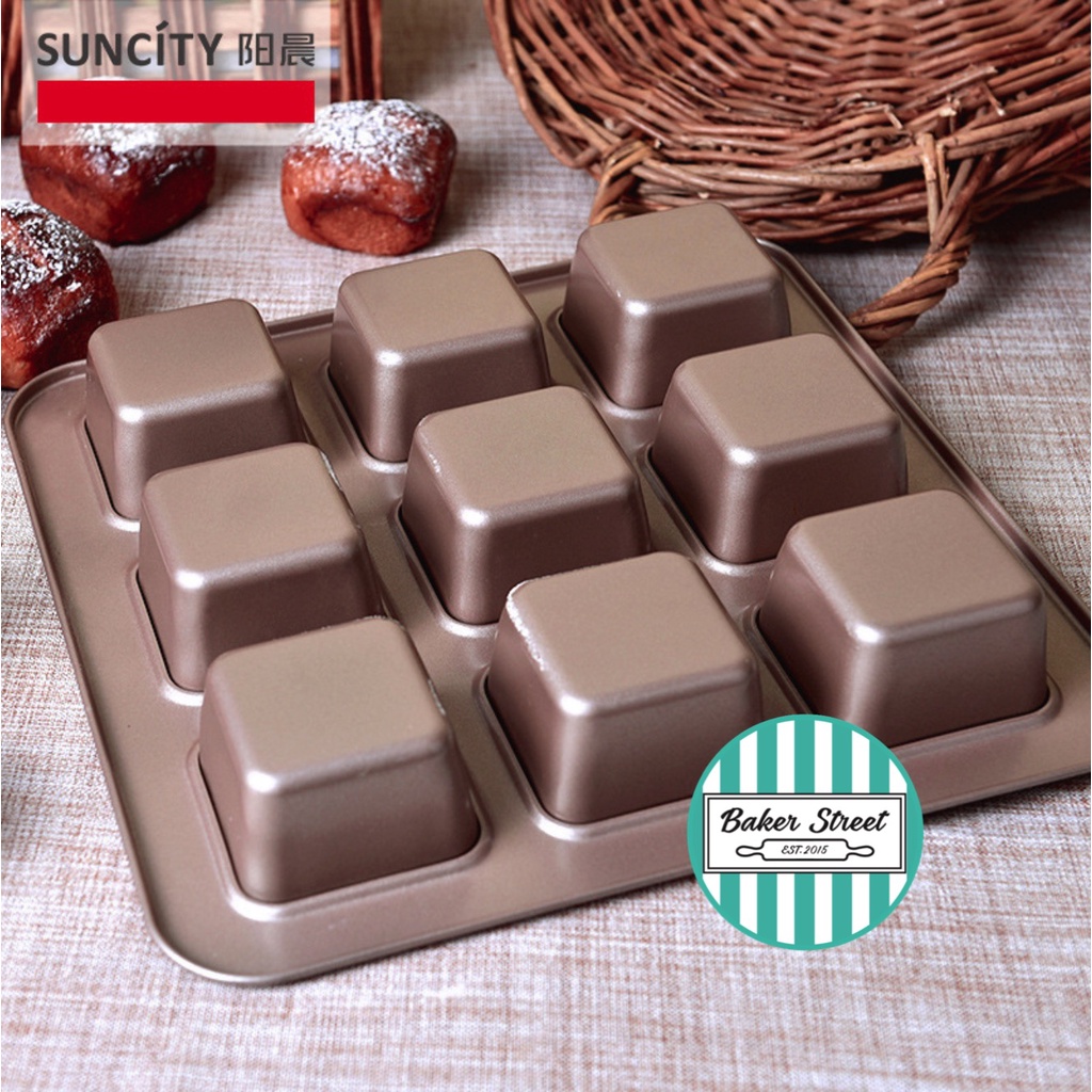 SUNCITY YC80199 พิมพ์ขนมสี่เหลี่ยม 9 หลุมเคลือบเทฟลอนสีทอง
