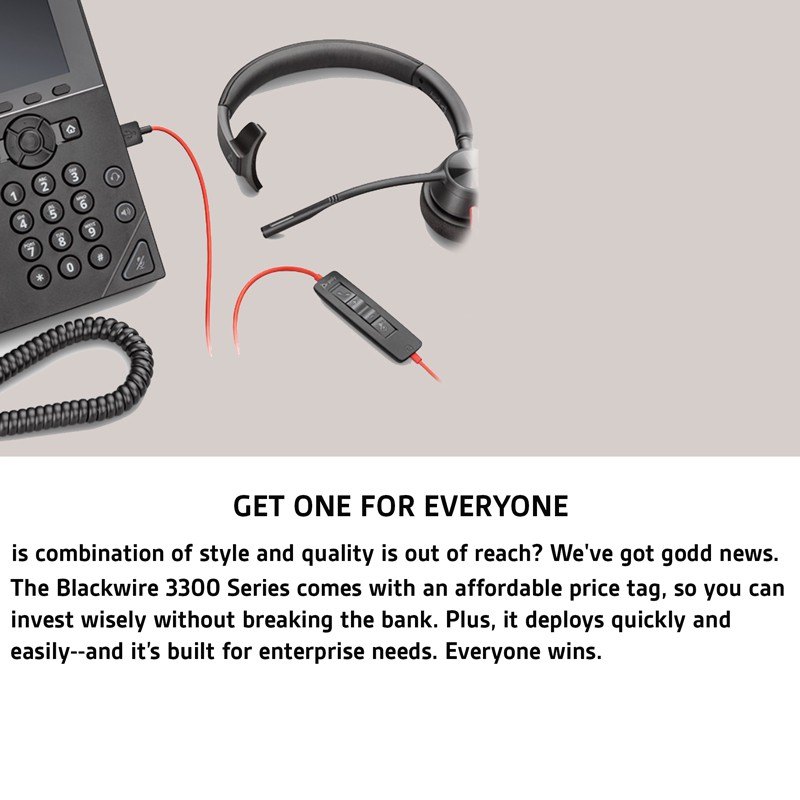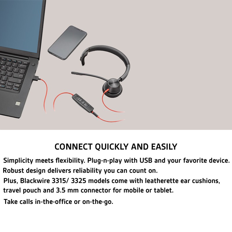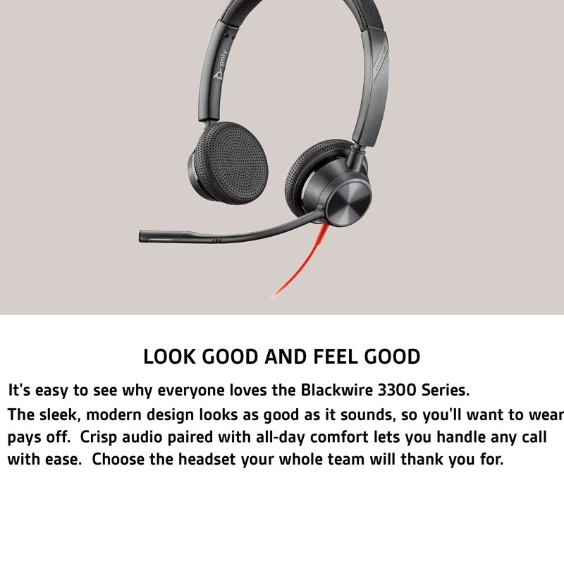 POLY Blackwire 3320 Stereo USB-C Headset +USB-C/A Adapter