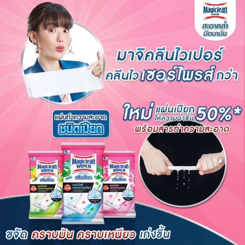 โฉมใหม่ Magiclean wiper มาจิคลีน เมจิกคลีน ไวเปอร์ แผ่นทำความสะอาด ชนิดแห้ง ชนิดเปียก 10 20 40 แผ่น