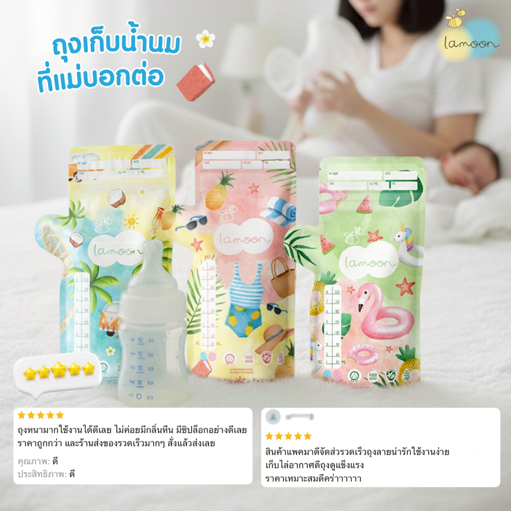 ชื้อ3ฟรี1 LAMOON ละมุน ถุงเก็บน้ำนมแม่ขนาด 5oz/8oz