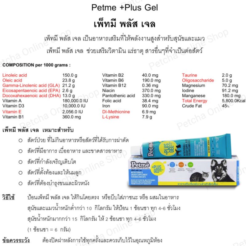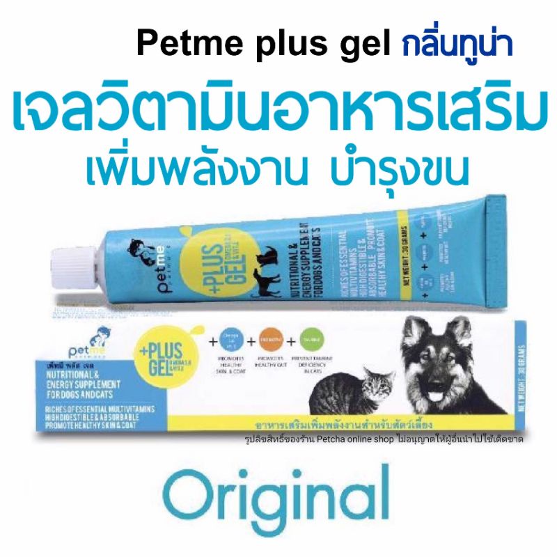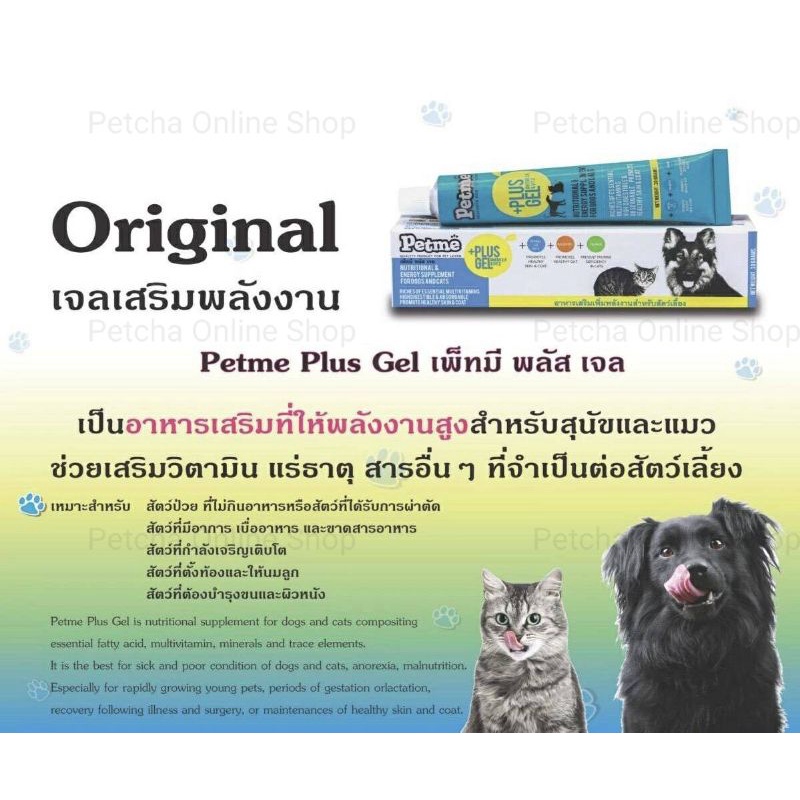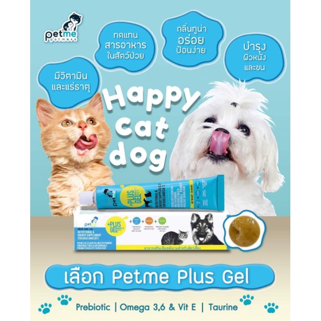 Petme plus gel เพ็ทมีเจล วิตามิน เจลอาหารเสริมเพิ่มพลังงานสุนัขแมว 30g./100g.