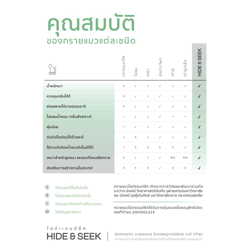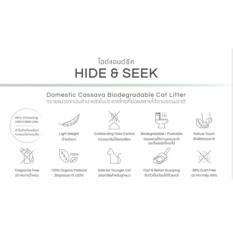 Hide & Seek ไฮด์แอนด์ซีค ทรายแมวมันสำปะหลัง 100% ทรายแมว ทรายแมวธรรมชาติ มี2 ขนาด 8.16kg.(18ปอนด์) หรือ 9.07kg (20ปอนด์)
