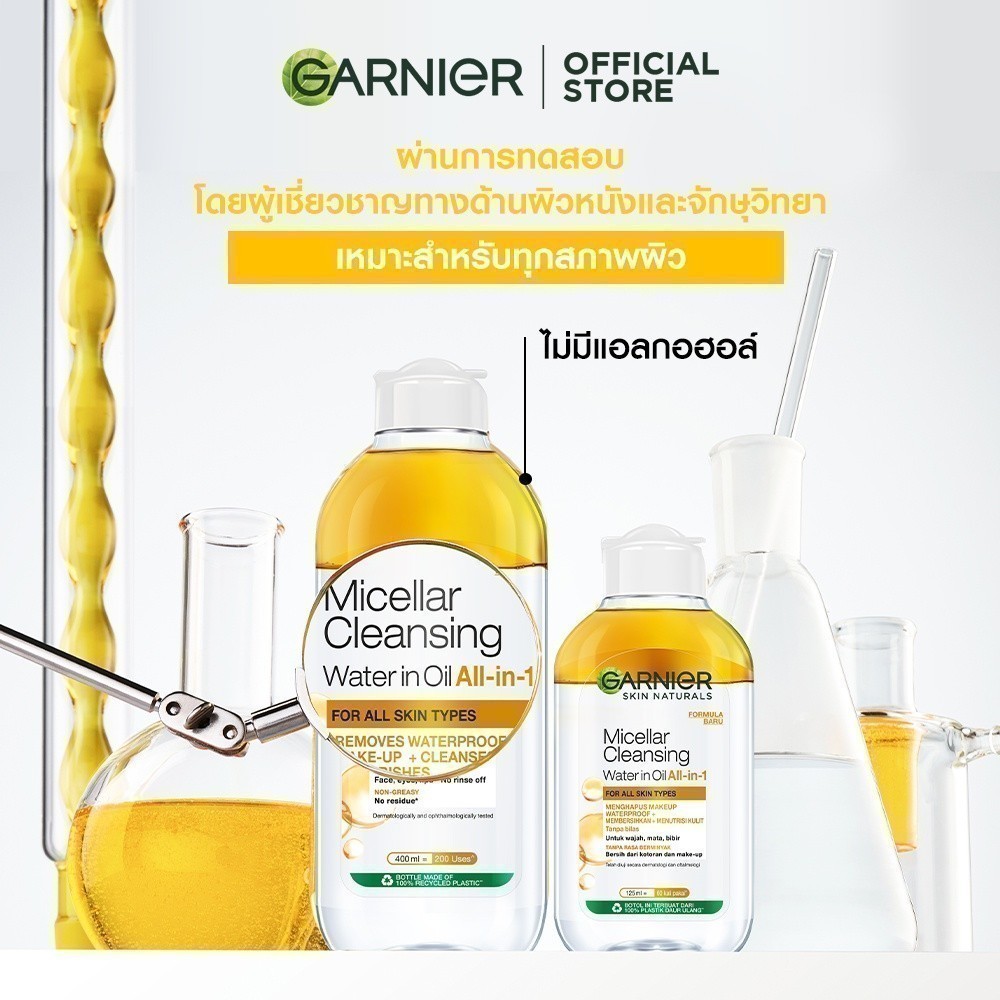 การ์นิเย่ ไมเซล่า ออยล์-อินฟิวส์ คลีนซิ่ง วอเตอร์ 400มล Garnier Micellar Water 400ml x2 ล้างเครื่องสำอาง