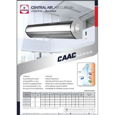 ม่านอากาศ CENTRAL AIR เซ็นทรัลแอร์ รุ่น CAAC Series ม่านตัดอากาศ พร้อมติดตั้ง