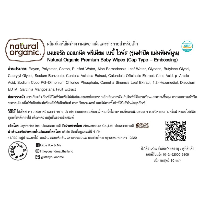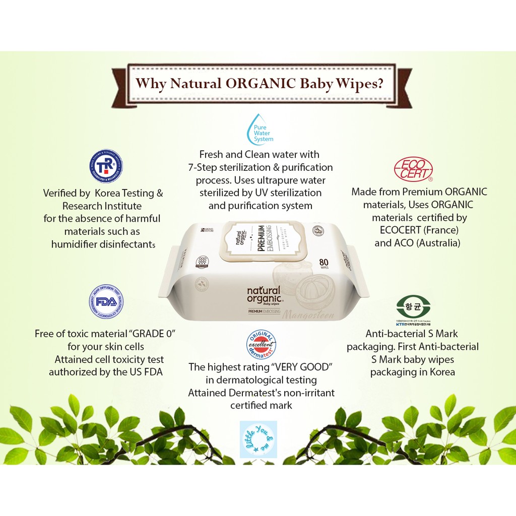 Natural Organic, Premium Embossing Baby Wipes (Cap, 4*80 Sheet)