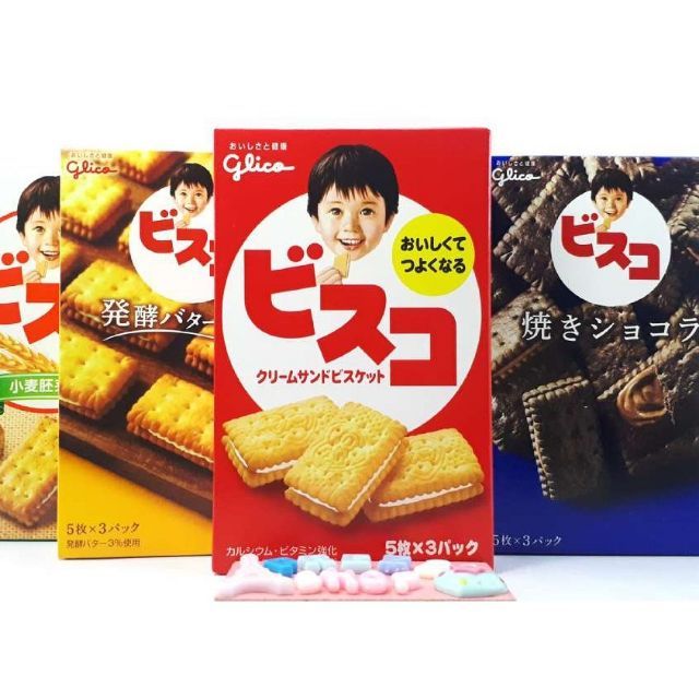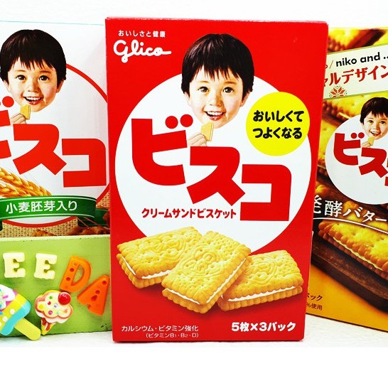 Glico Bisco Cream บีสโก้ ขนมปังกรอบสอดใส้ ขนมสำหรับเด็ก บิสโก้ จากญี่ปุ่น 60g
