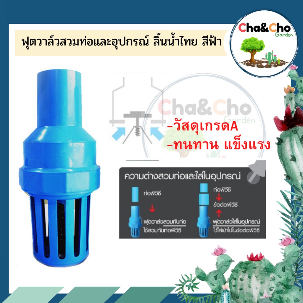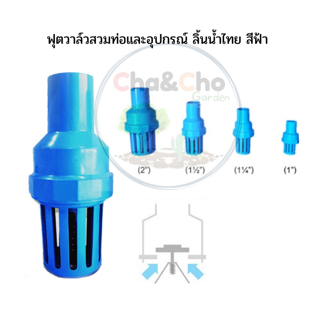 ฟุตวาล์วสวมท่อและอุปกรณ์ PVC ลิ้นน้ำไทย สีฟ้า 1/2"-1 1/2"(4หุน-นิ้วครึ่ง) ฟุตวาล์ว ลิ้นน้ำไทย ตรามือ