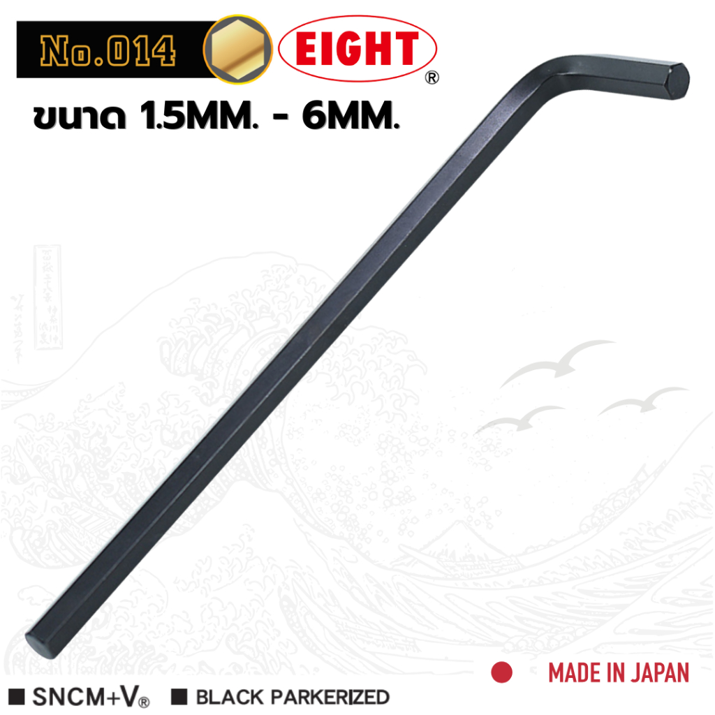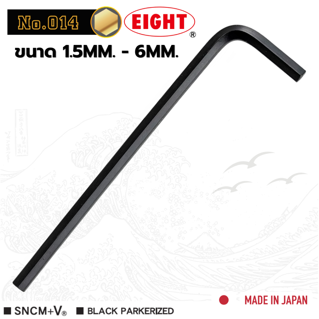 EIGHT ประแจหกเหลี่ยม ยาว สีดำ ขนาด 1.5mm. - 6mm. No.014