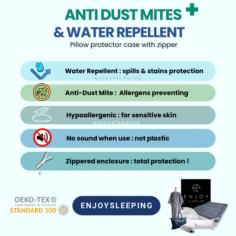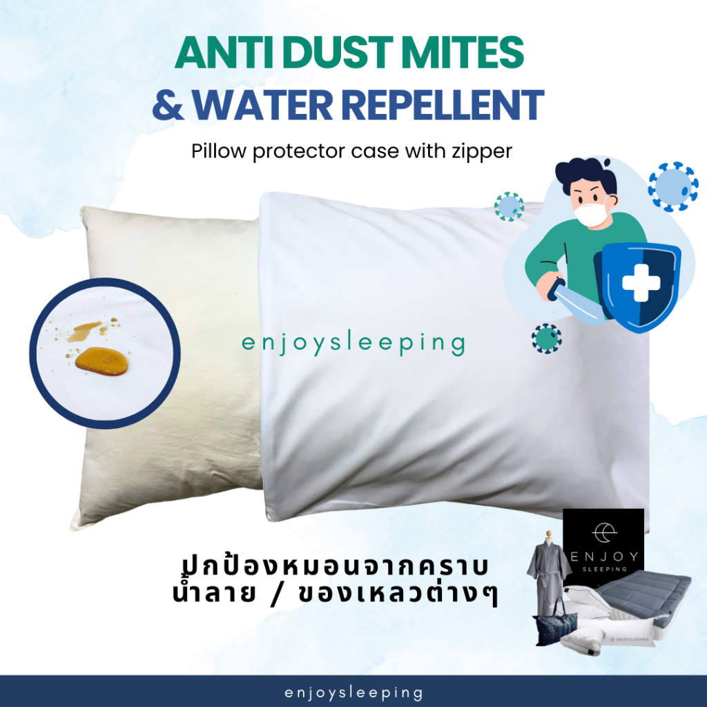 ปลอกหมอน กันไรฝุ่น กันน้ำ Deep sleep pillow case with zipper กันน้ำลาย หมอน 20x30 anti dust mites