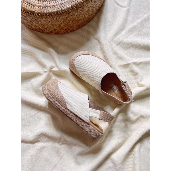(ตอนนี้จะพรีออเดอร์ทั้งหมดนะคะ)- รุ่นนี้ขายดีมาก!! รองเท้าแฮนด์เมด รัดส้นผ้าลูกฟูก-ทรงหัวโต Clogs Sling back