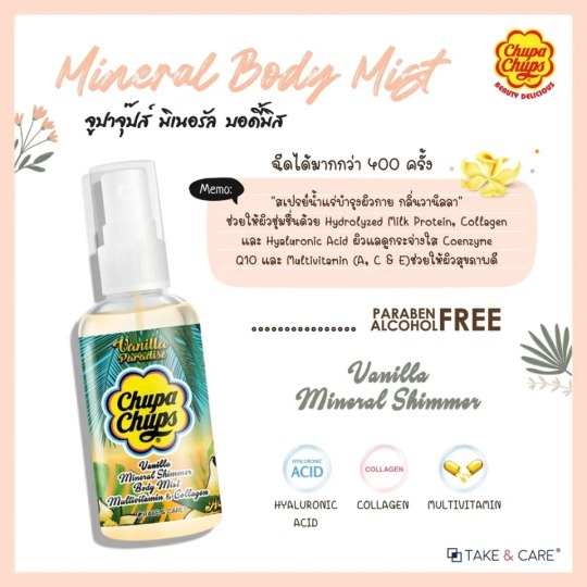 TAKE&CARE X Chupa Chups บอดี้มิส เสปรย์น้ำหอม ใช้ได้ทั้งผิวและผม น้ำหอมฉีดตัว ฉีดผม 60ml.