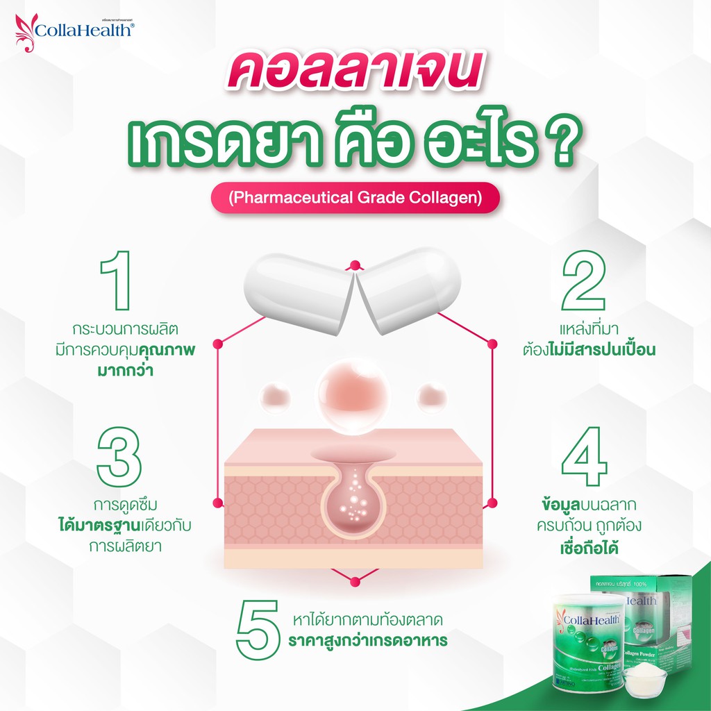 CollaHealth Collagen Powder 100% (คอลลาเฮลท์ คอลลาเจน ชนิดผง ซองพกพากล่องละ 30 ซอง 90 กรัม)