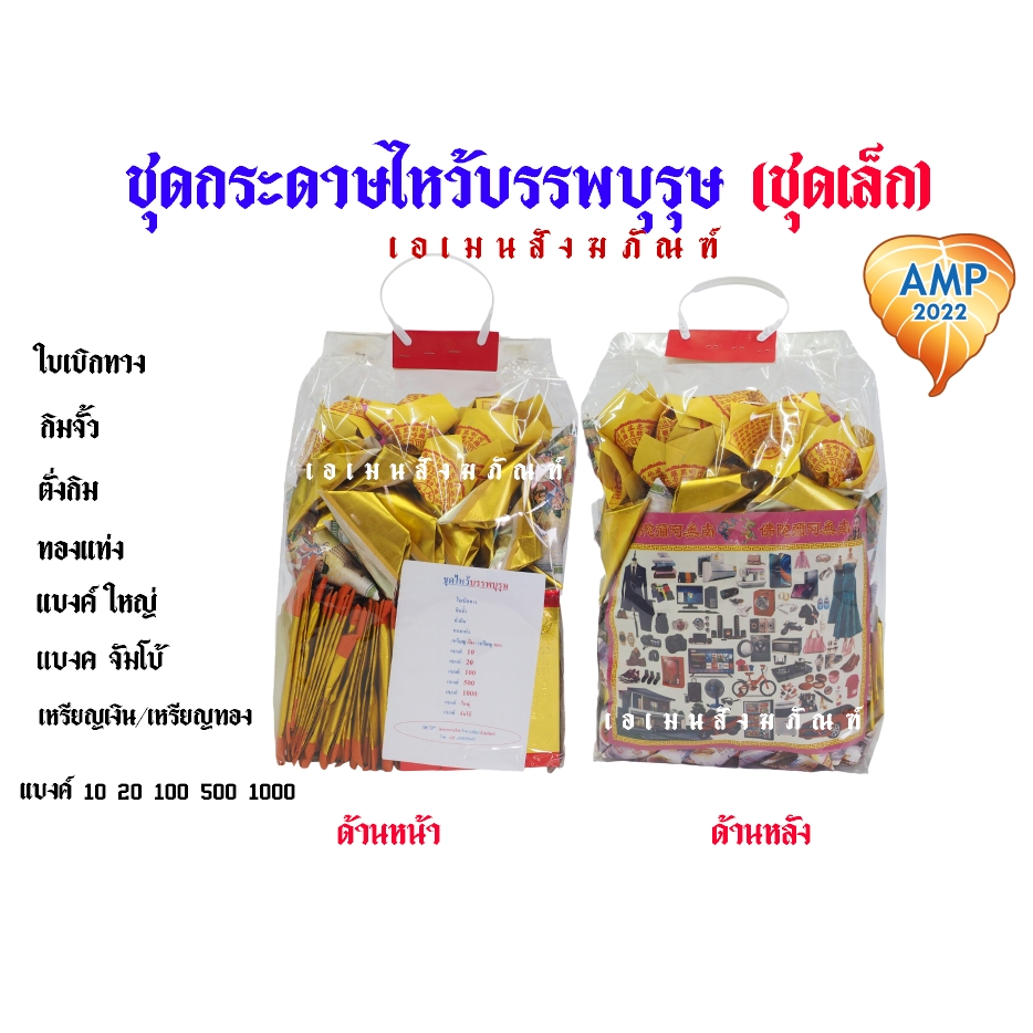 กระดาษไหว้บรรพบุรุษ กระดาษไหว้บรรพบุรุษครบชุด ชุดเล็ก (ราคาต่อ 1 ชุด)