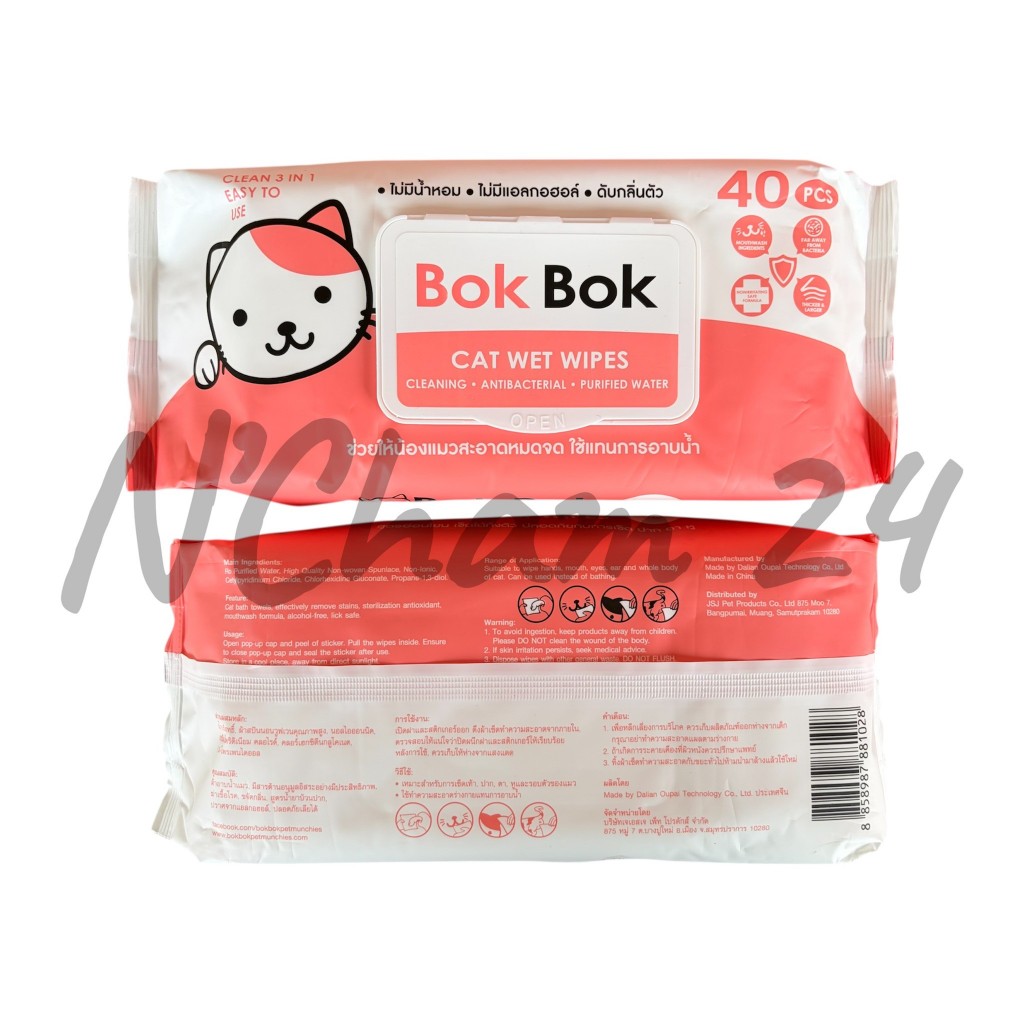 Bok Bok Wet Wipes ทิชชู่เปียกทำความสะอาด สำหรับสุนัขและแมว ปราศจากแอลกอฮอล์ ปราศจากน้ำหอม