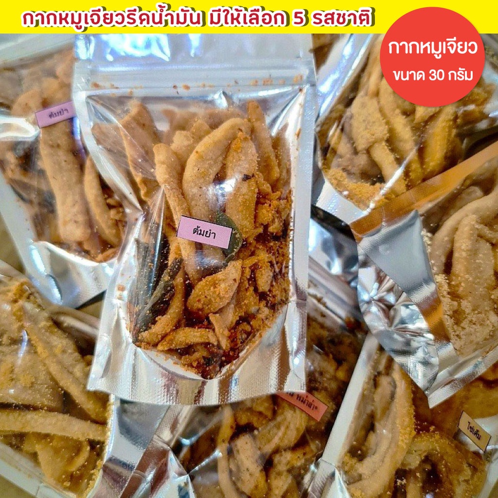 กากหมูเจียวโบราณ (ซอง 30 กรัม) รสดั้งเดิม, ต้มยำ, ซาวครีม, ไข่เค็ม, หม่าล่า