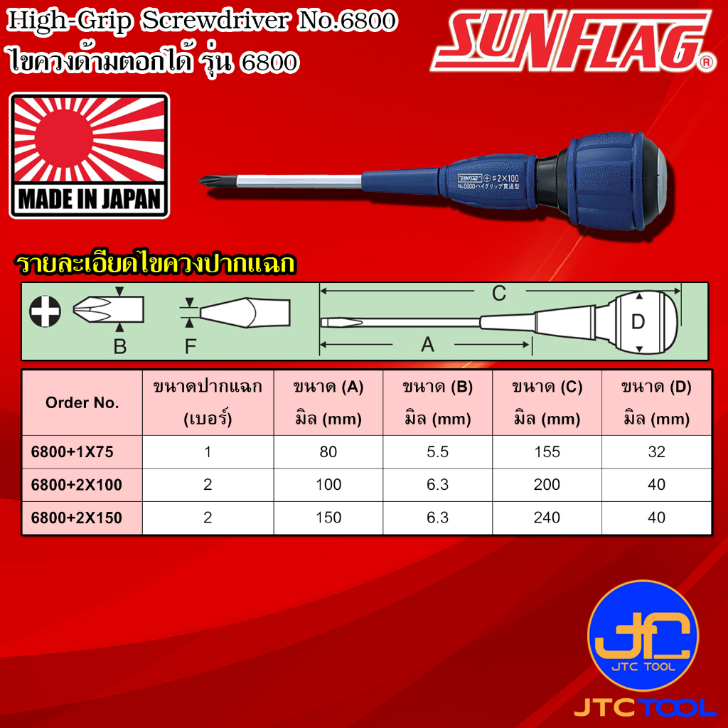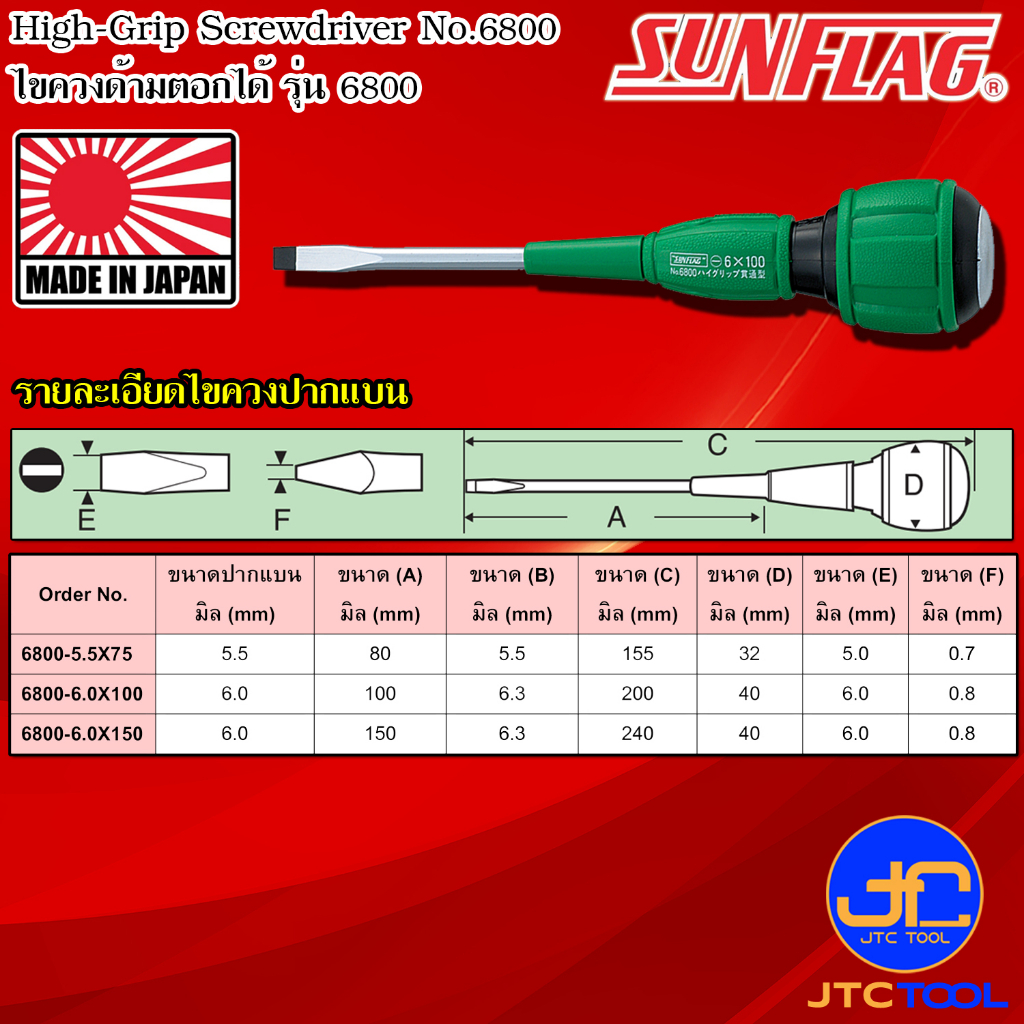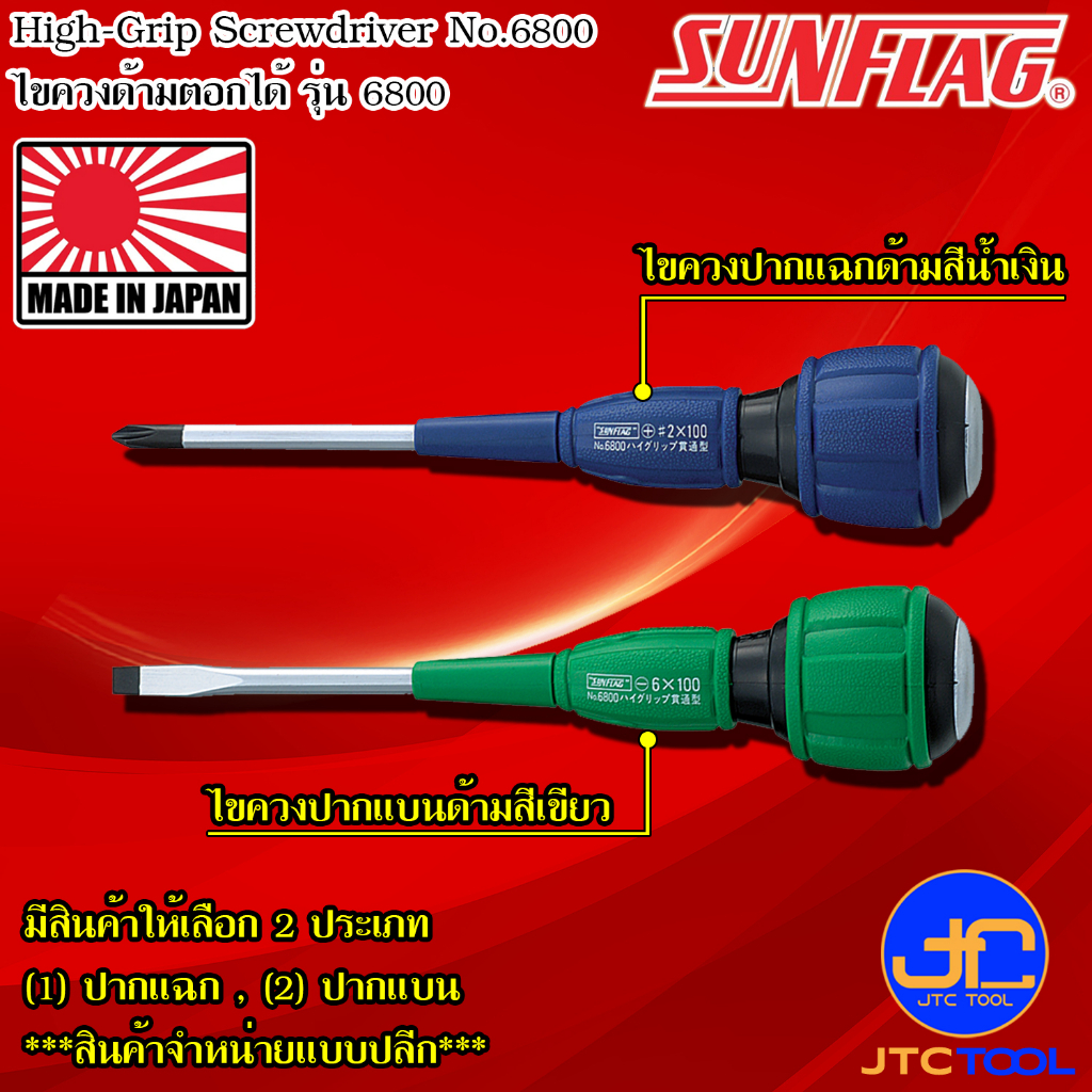 Sunflag ไขควงด้ามยางตอกได้มีแม่เหล็ก รุ่น 6800 - High-Grip Screwdriver, Tang-through for hard duty type