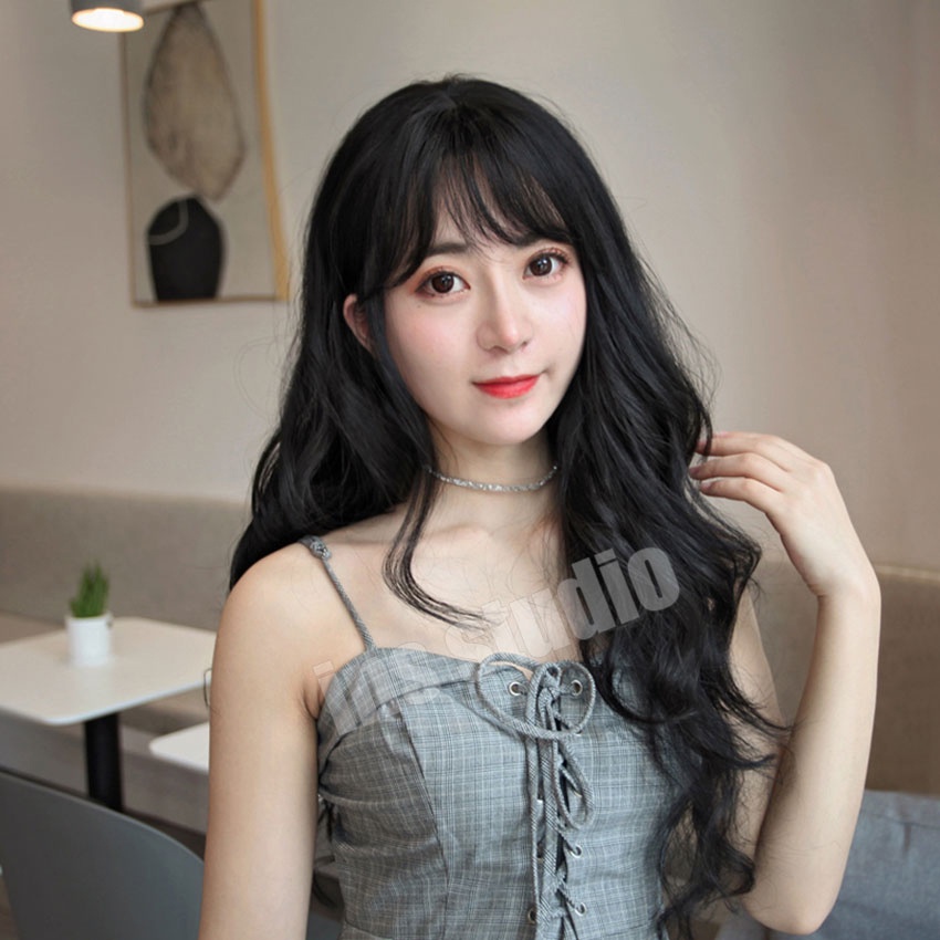 Barsamiea ฟรีตาข่ายคลุมผม วิกผม วิกผมยาว วิกผมผู้หญิงเกาหลี หน้าม้าปลายดัดลอนใหญ่สวย วิกผมยาวสวยเซ็กซี่