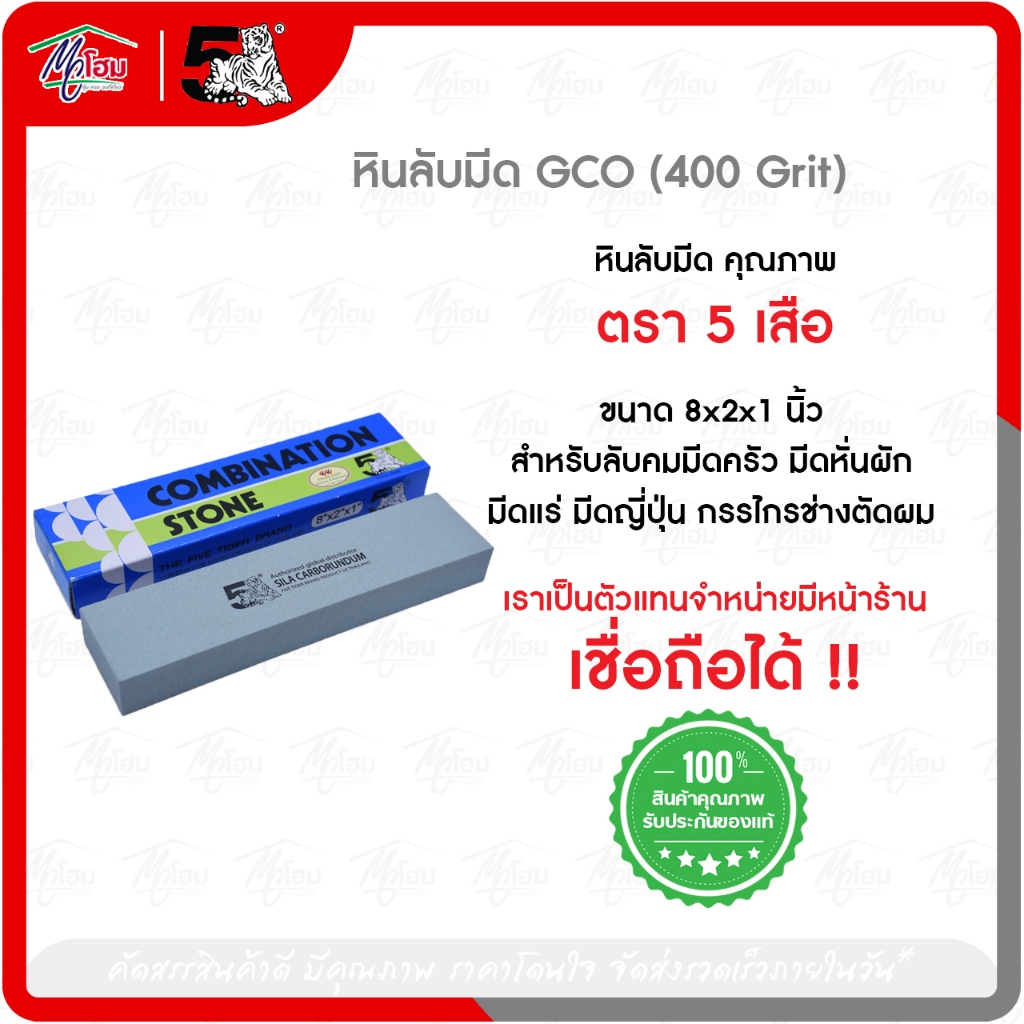 หินลับมีด GCO (400 Grit) 8x2x1 นิ้ว ตราห้าเสือ *ของแท้*