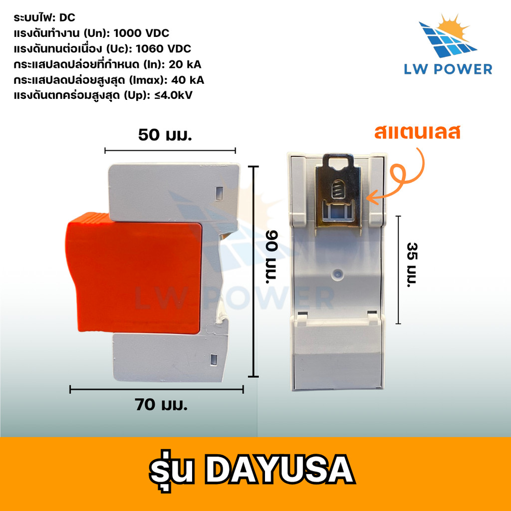 SPD ป้องกันฟ้าผ่า2P Dc 1000V ไฟกระชากโซล่าเซลล์ ป้องกันแสงอาทิตย์ เสิร์จกันฟ้าผ่า surge protective device