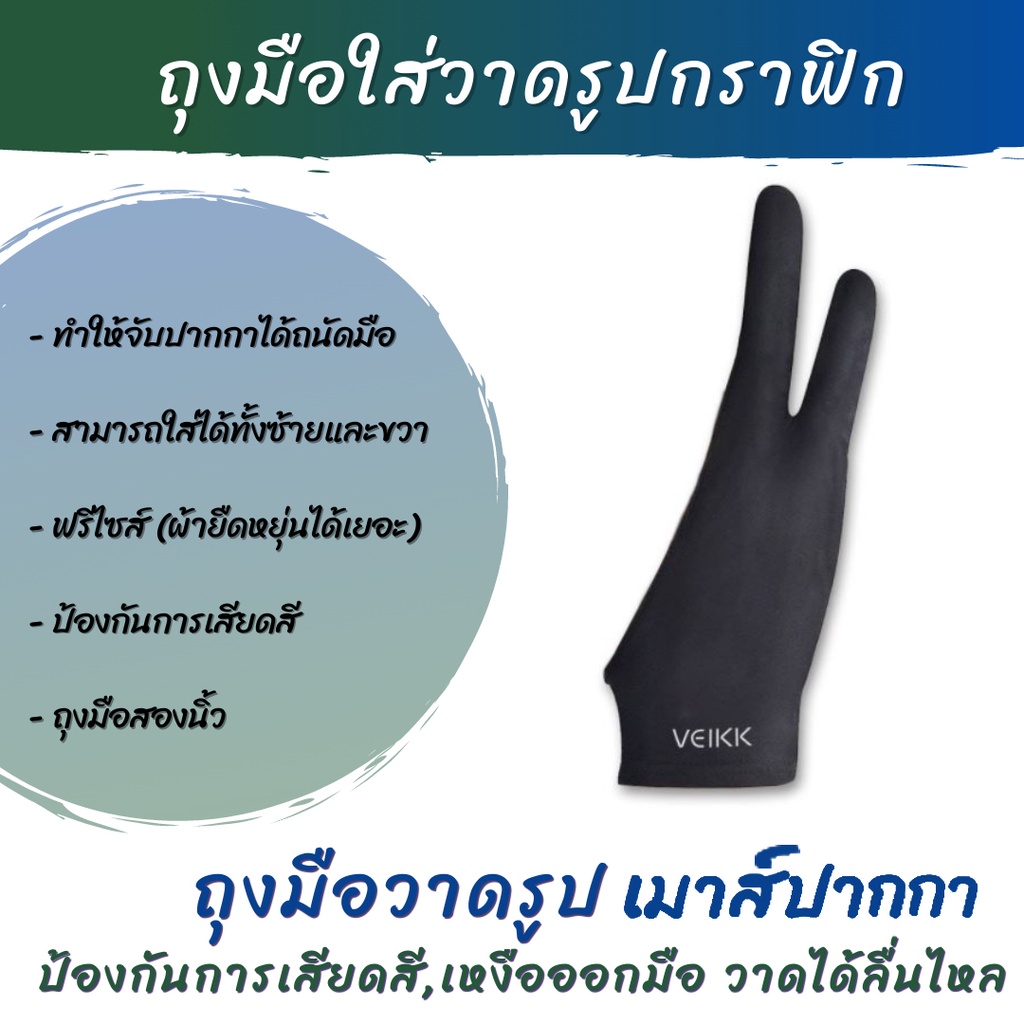 ถุงมือวาดรูป ถุงมือสไตลัส ใช้สำหรับ เม้าส์ปากกา Graphic Drawing Glove VEIKK, XP-Pen, Wacom, Huion