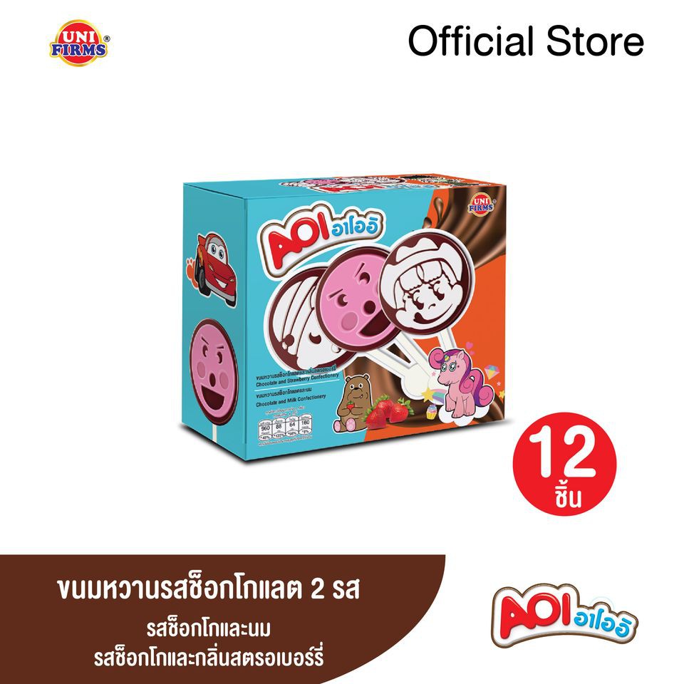 [1แพ็ค] อาโออิ ขนมหวานรสช็อกนม และ ขนมหวานรสช็อกโกแลตและกลิ่นสตรอเบอร์รี่ ขนาด 15 กรัม x 12 ชิ้น I ขนม ช็อกโกแลต