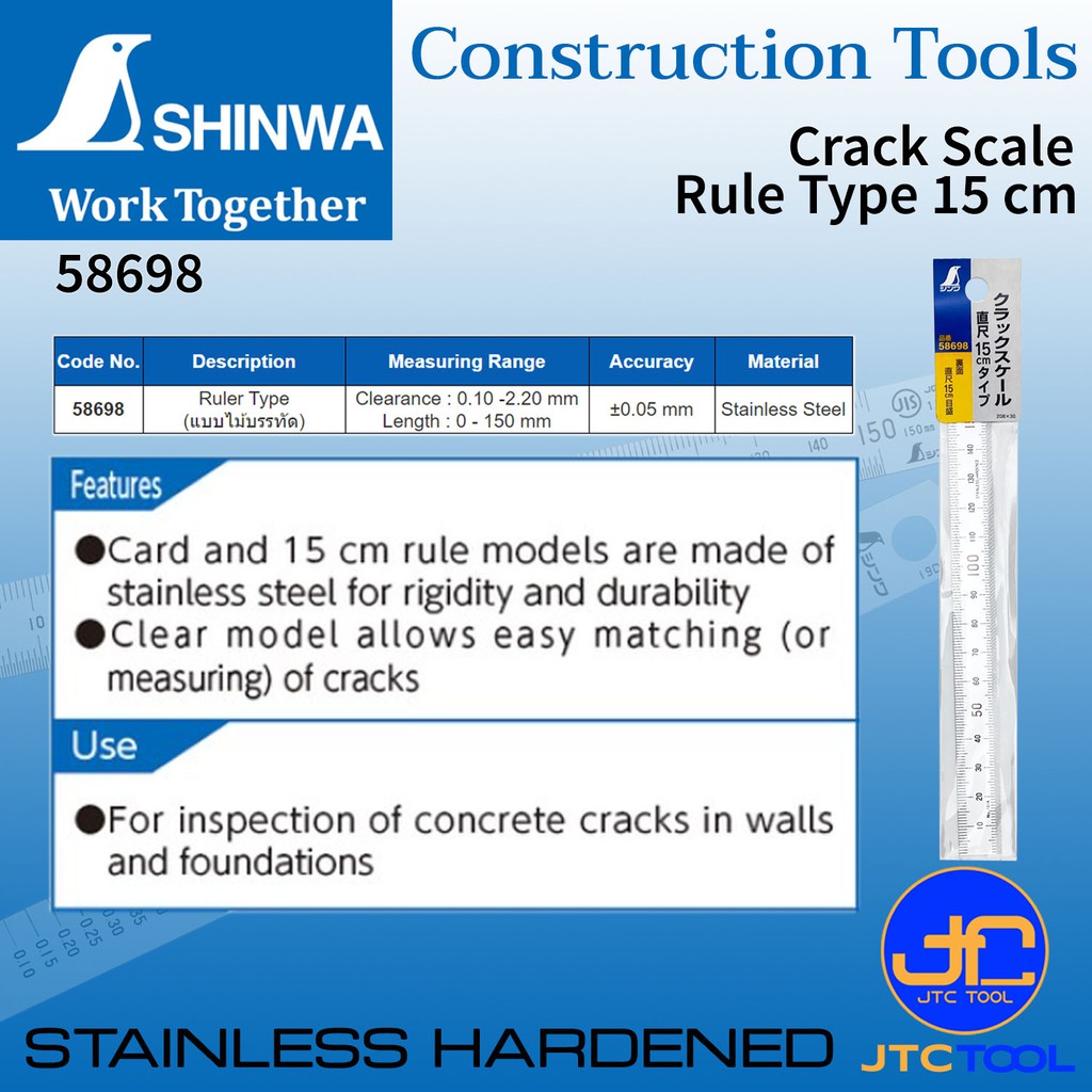 Shinwa แผ่นเช็ครอยร้าว - Crack Scale No.58698