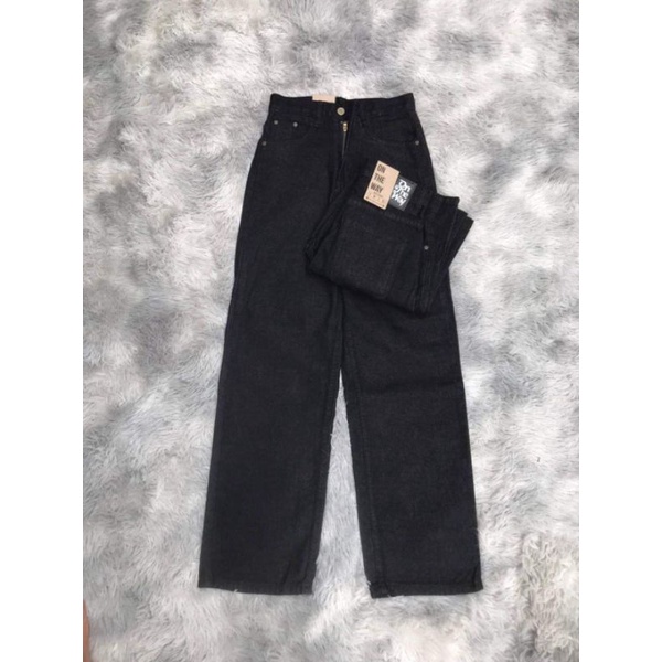 📤[พร้อมส่ง]👖กางเกงยีนส์ขากระบอกดำสไตล์วินเทจ เอวสูง ใส่ได้ทั้งชายและหญิง ผ้าดี สีไม่ตก ยีนส์ดำสวยมาก