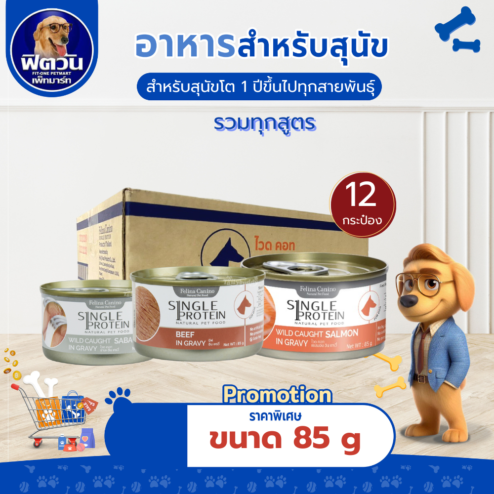 Felina Canio- สุนัข ไวด คอท ขนาด 85 กรัม**จำนวน 24 กระป๋อง **{อาหารเปียกสุนัข}
