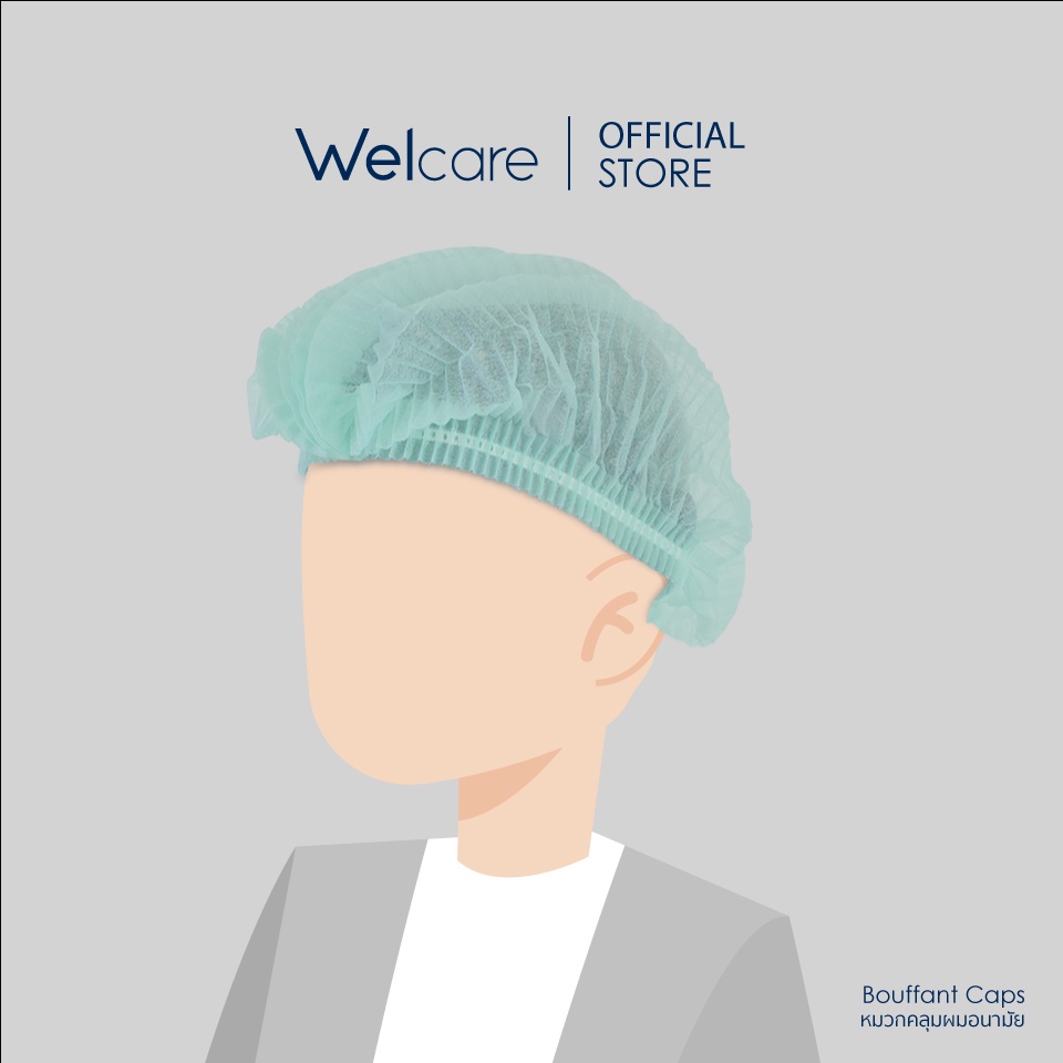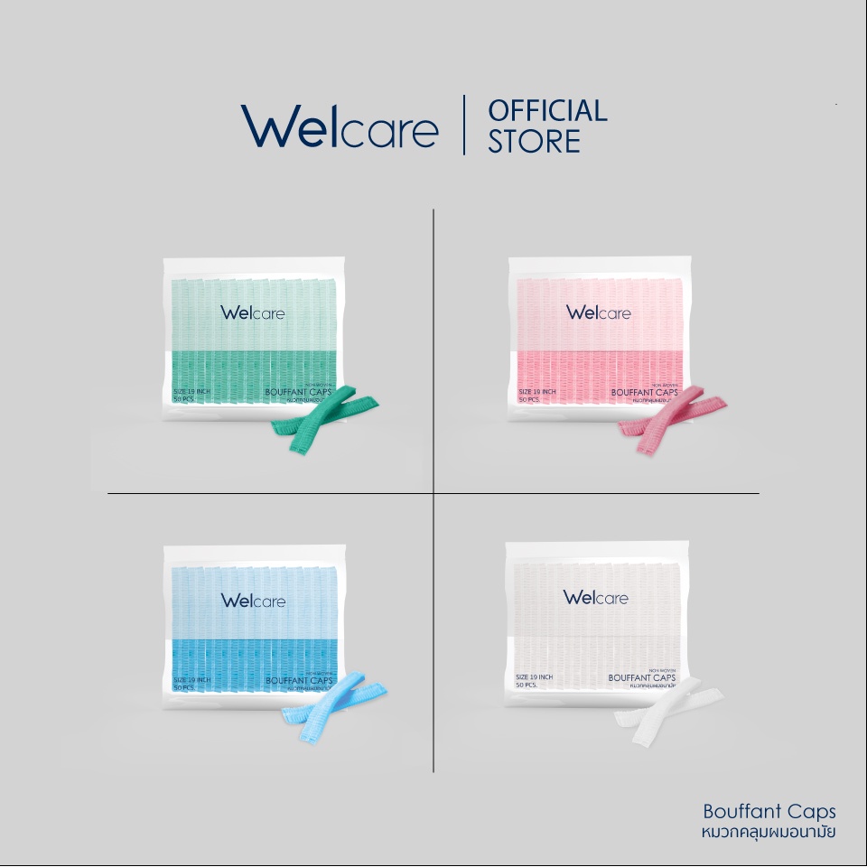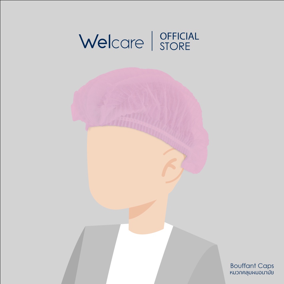 [Official] Welcare Bouffant Cap หมวกตัวหนอน มีทั้งหมด 4 สี (บรรจุ 50 ชิ้น / 1 เเพ็ค )