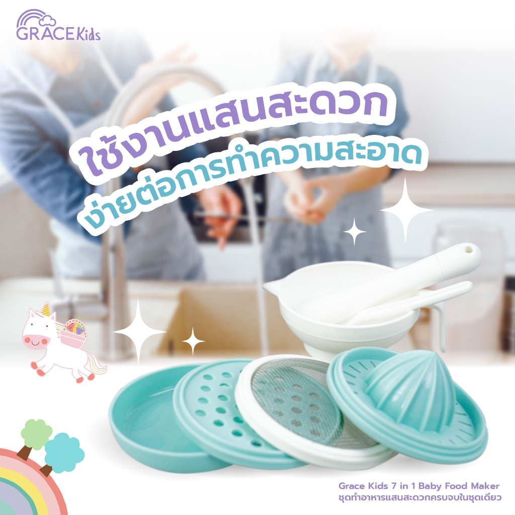 Grace Kids ชุดบดอาหารเด็ก 6 in 1 | บด–คั้น–ขูด–กรอง–ตวง | อุปกรณ์เตรียมอาหารเสริมลูก