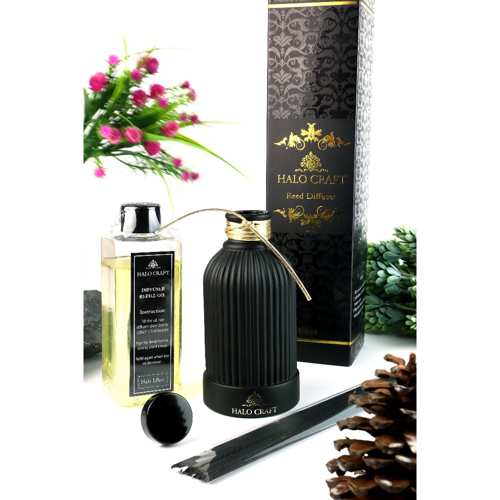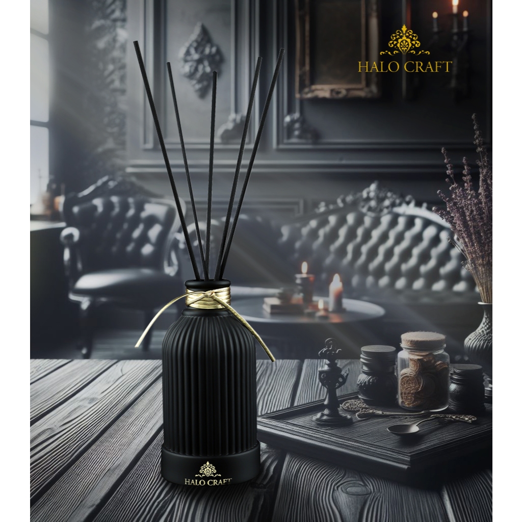 ก้านไม้หอม ก้านน้ำหอม ก้านไม้หอมปรับอากาศ Halo Craft : 180 ml ขวดสีดำ เหมาะ ตกแต่งห้อง หรือ เป็น ของขวัญ หอม สวย หอมนาน