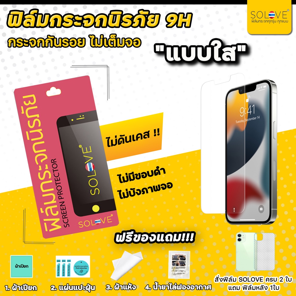 🔥 ฟิล์มกระจกใส ไม่เต็มจอ ไม่บังภาพ For iphone 14promax 14 13ProMax 13mini 12ProMax 11Pro 7Plus Xr ฟิล์มใส ไอโฟน solove