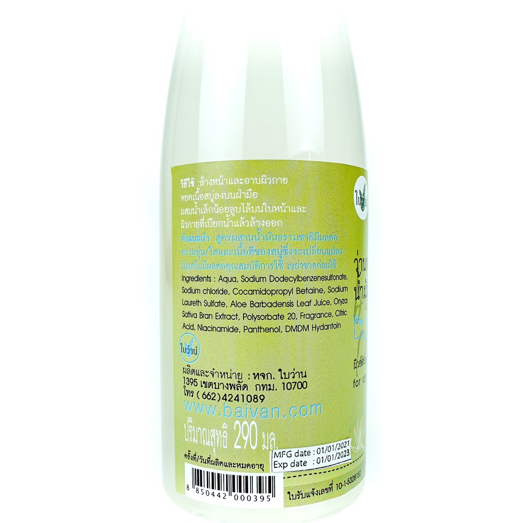 Baivan ใบว่าน สบู่เหลวว่านหาง+จมูกข้าว (เหมาะสำหรับผู้มีผิวแห้ง ระคายเคืองแพ้ง่าย)