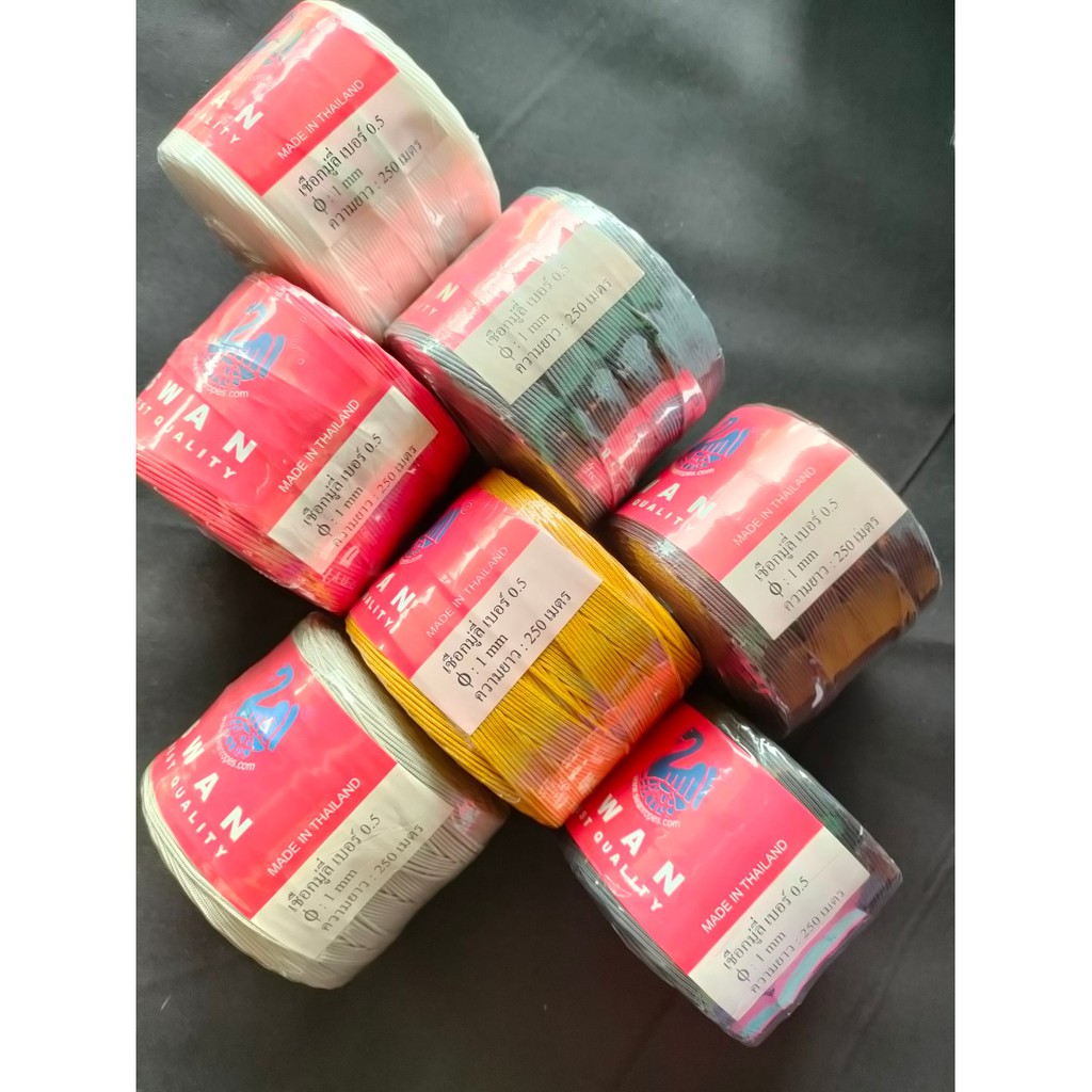 เชือกมู่ลี่เบอร์0.5ขนาด1มิลความยาว250เมตรหรือเชือกร่มนอก/เชือกมีใส้/ตราหงส์/เชือกร่มมีใส้