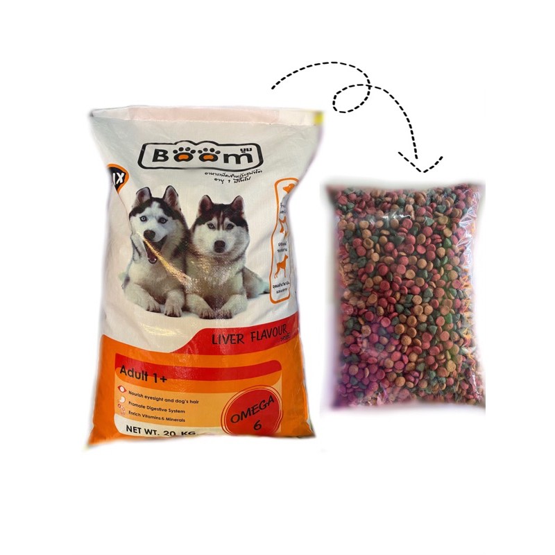 อาหารสุนัขบูม(Boom) 3สี แบ่งบรรจุ ขนาด1กก. เกรดพรีเมี่ยม เหมาะกับสุนัขทุกสายพันธุ์
