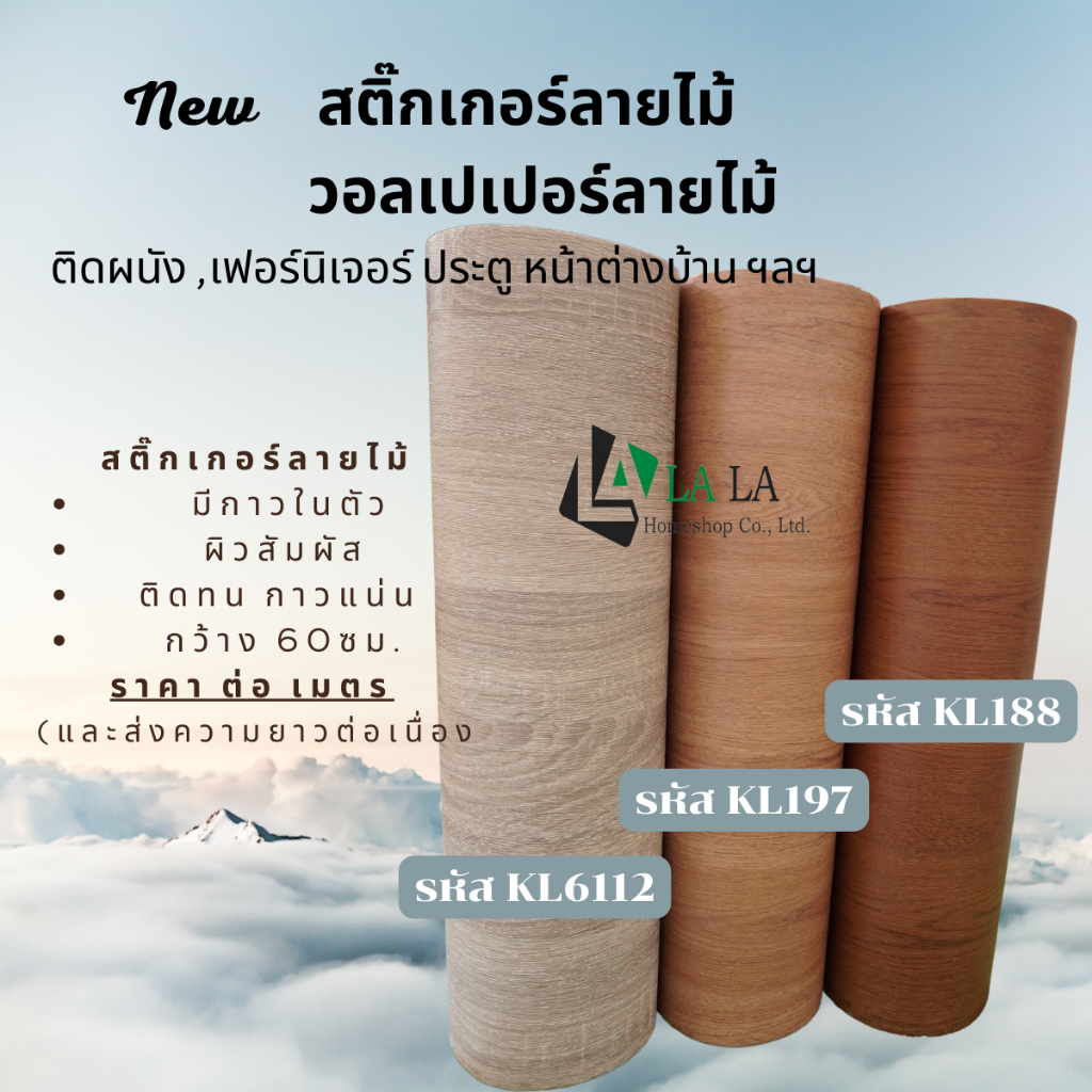 LALAHOME วอลเปเปอร์ลายไม้ สติ๊กเกอร์ลายไม้กว้าง 60 เซน ยาว 3 เมตร และ 5 เมตร ต่อม้วน หนา มีกาวในตัว