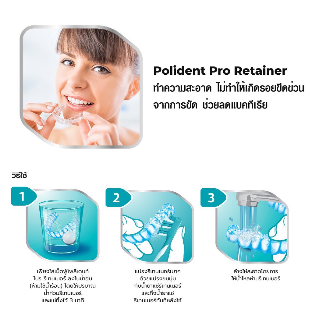 Exp 04/27 Polident ฟันปลอม สีเขียว / Pro Retainer เม็ดฟู่ทำความสะอาด รีเทนเนอร์ 1 กล่อง มี 30 เม็ด เม็ดฟู่
