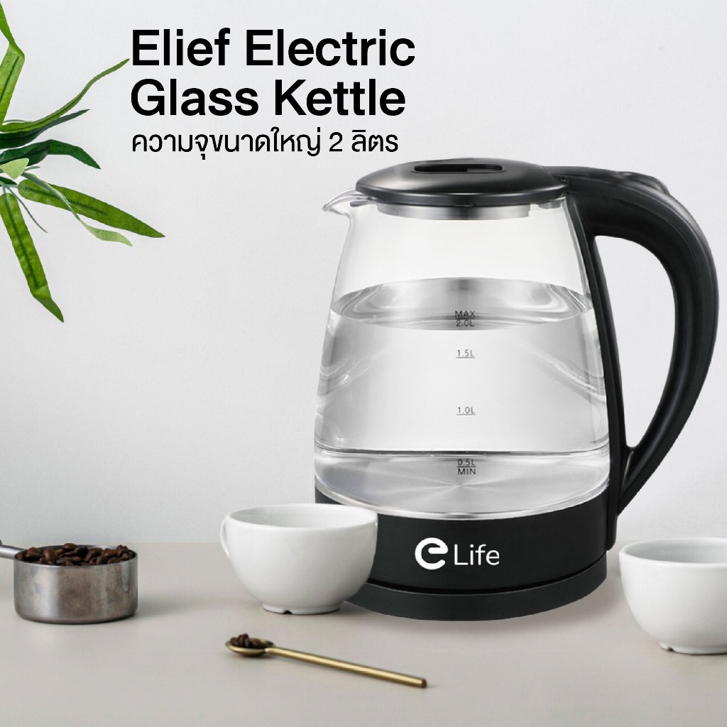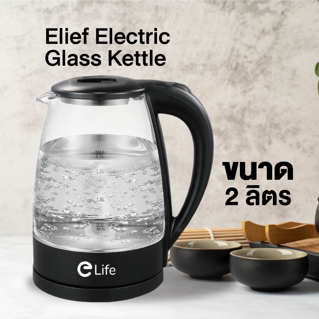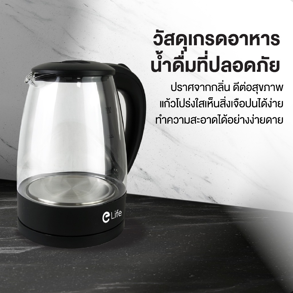 กาต้มน้ำร้อน แสงสีฟ้า ฆ่าเชื้อ กาต้มน้ำไฟฟ้า elife ความจุ 1.8-2L 1500W กาน้ำร้อน สแตนเลส304 ตัดไฟอัตโนมัติ ประกัน 1 ปี