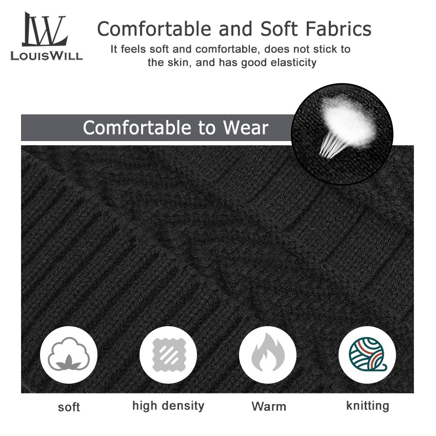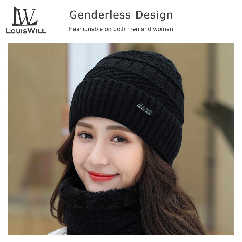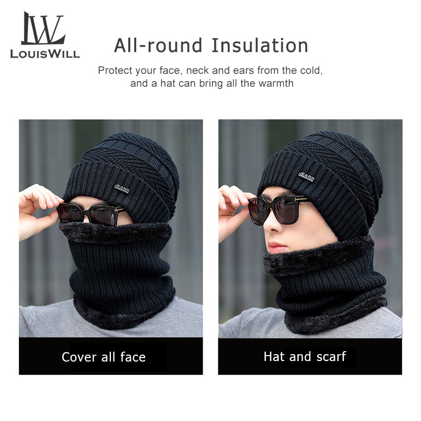 Louiswill หมวกบีนนี่ ผ้าพันคอ ผ้าขนสัตว์ถัก แบบหนา ให้ความอบอุ่น แฟชั่นฤดูหนาว สําหรับปีนเขา เล่นสกี ขี่จักรยาน
