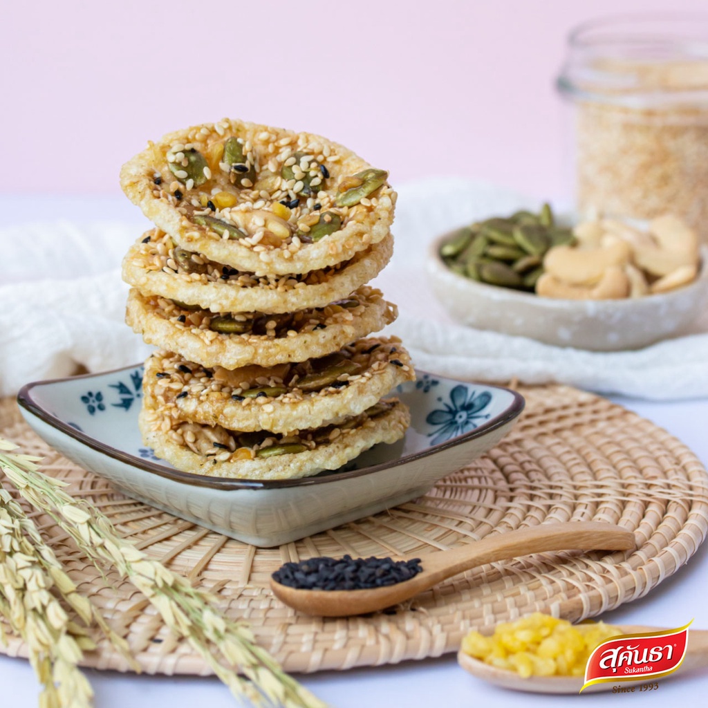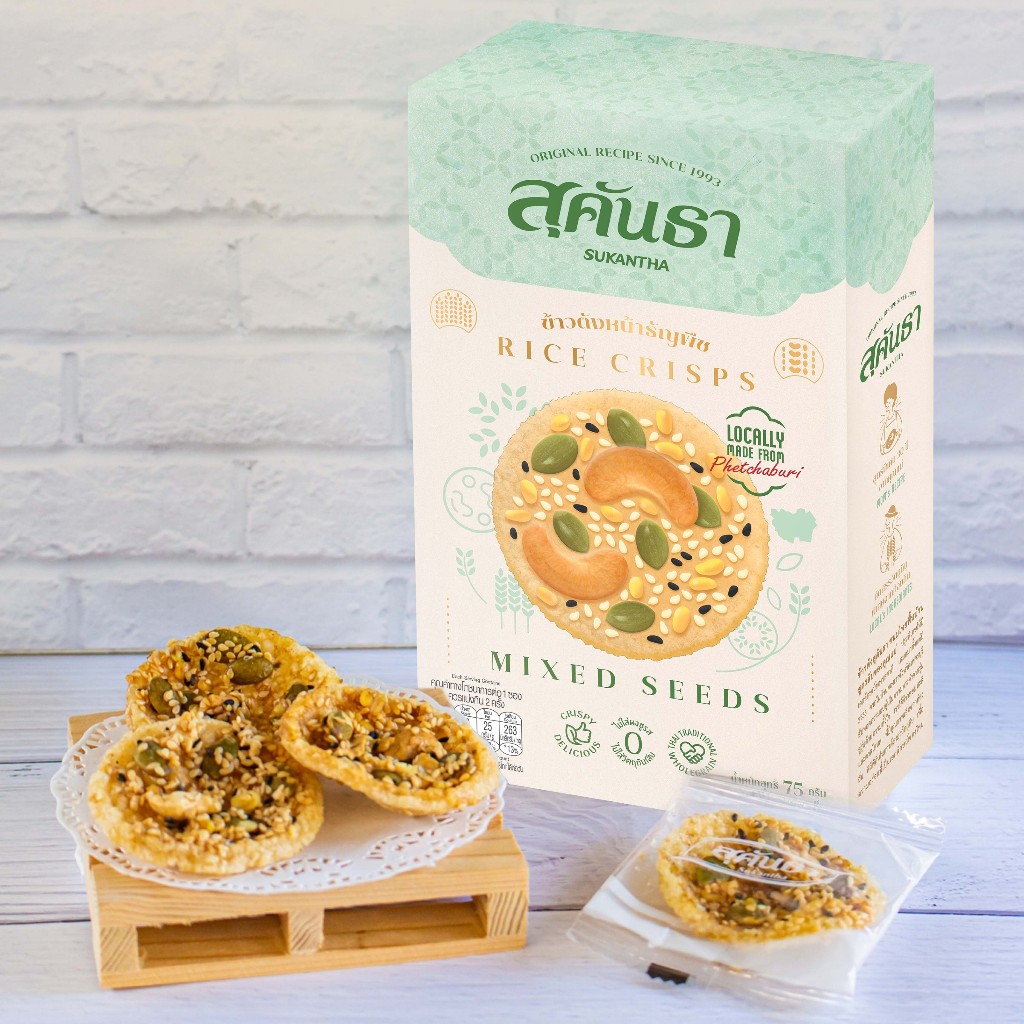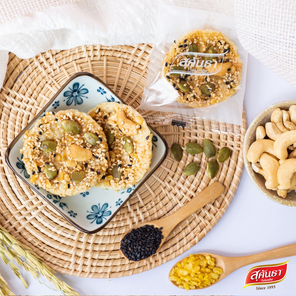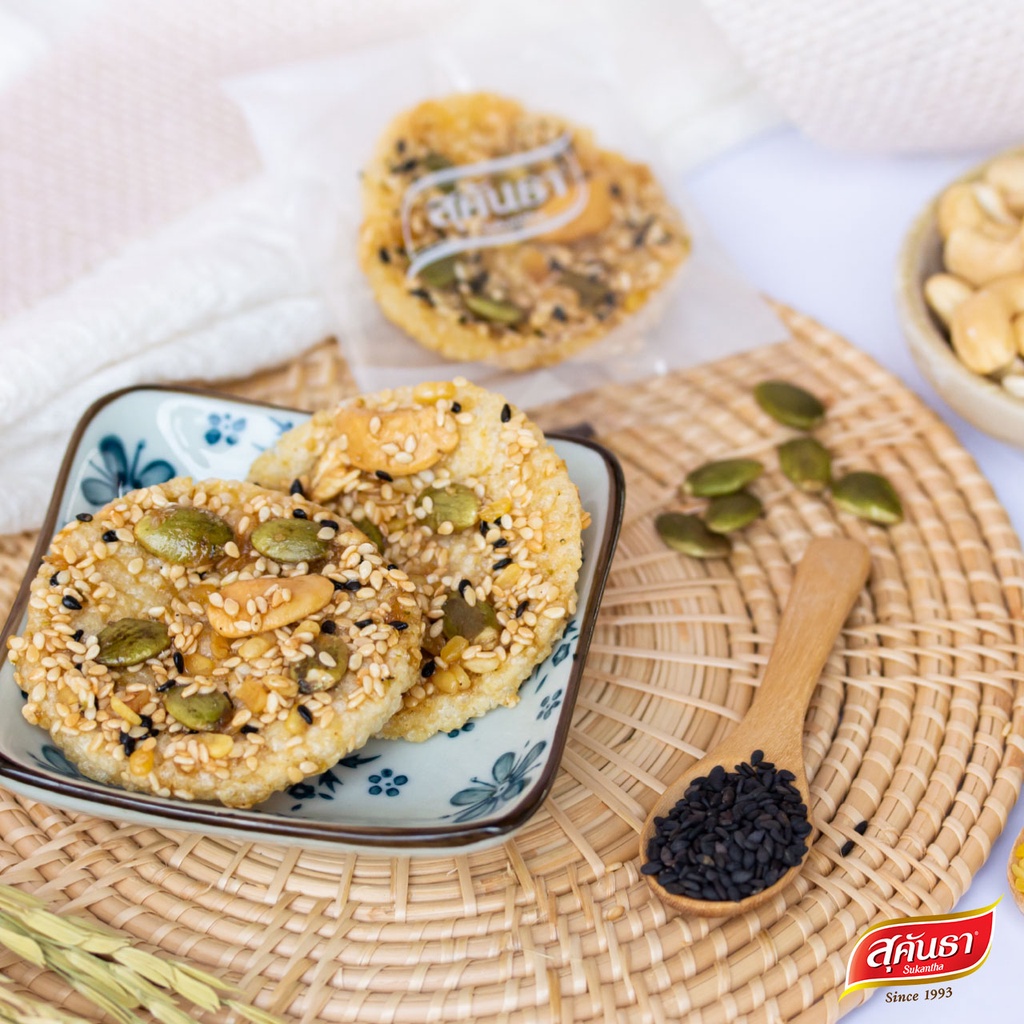 ขนมไทย สุคันธา ข้าวตังธัญพืช แบบกล่อง (75 กรัม) ขนมอร่อยเพชรบุรี SUKANTHA Rice Crisps with Mixed-Seeds in Box