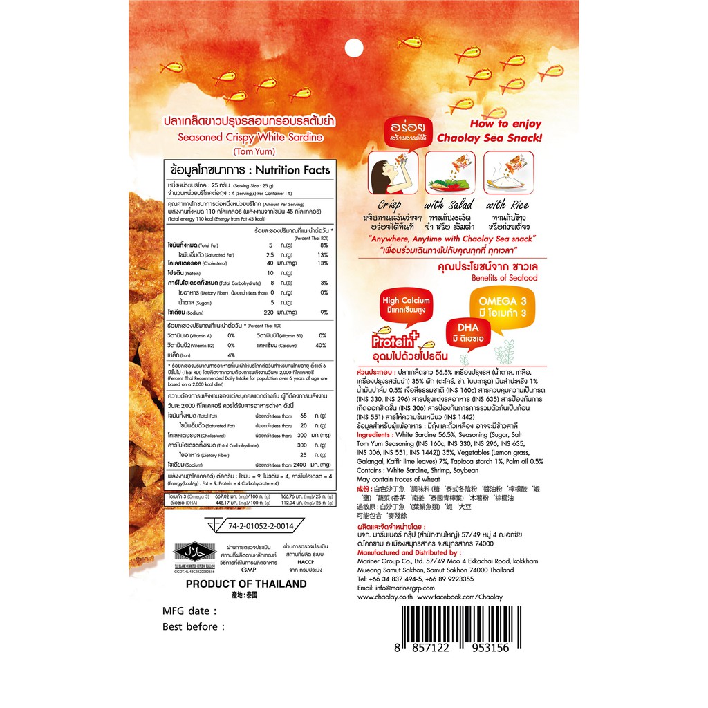 ชาวเล ปลาเกล็ดขาวปรุงรสอบกรอบรสต้มยำ 100g #ปลากรอบ #แคลเซียม #โปรตีน พร้อมทาน