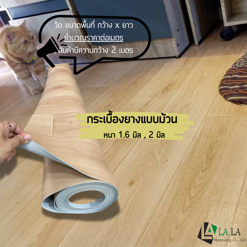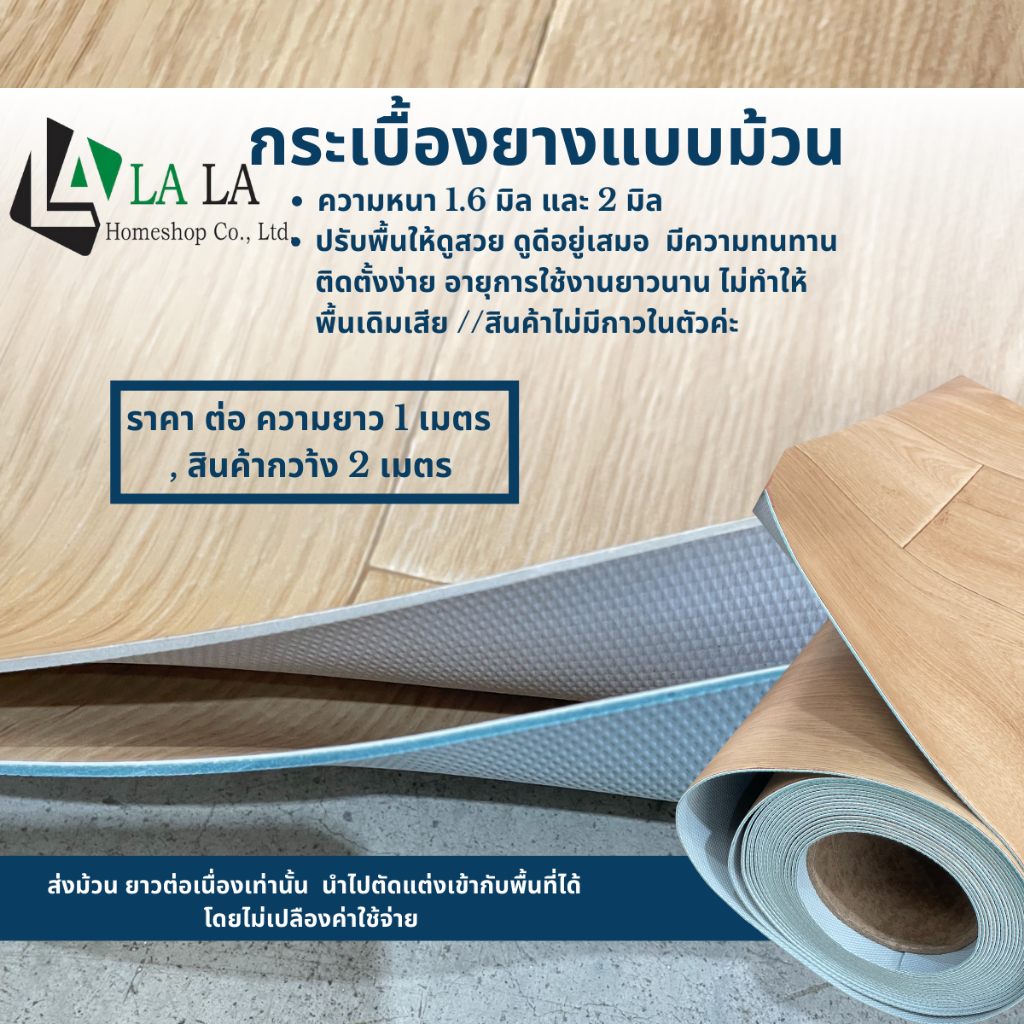 LALA กระเบื้องยางแบบม้วน กระเบื้องยางปูพื้นหนา 1.6 มิล ,2 มิล กว้าง 2เมตรยาว 1 เมตร ราคา ต่อ เมตร