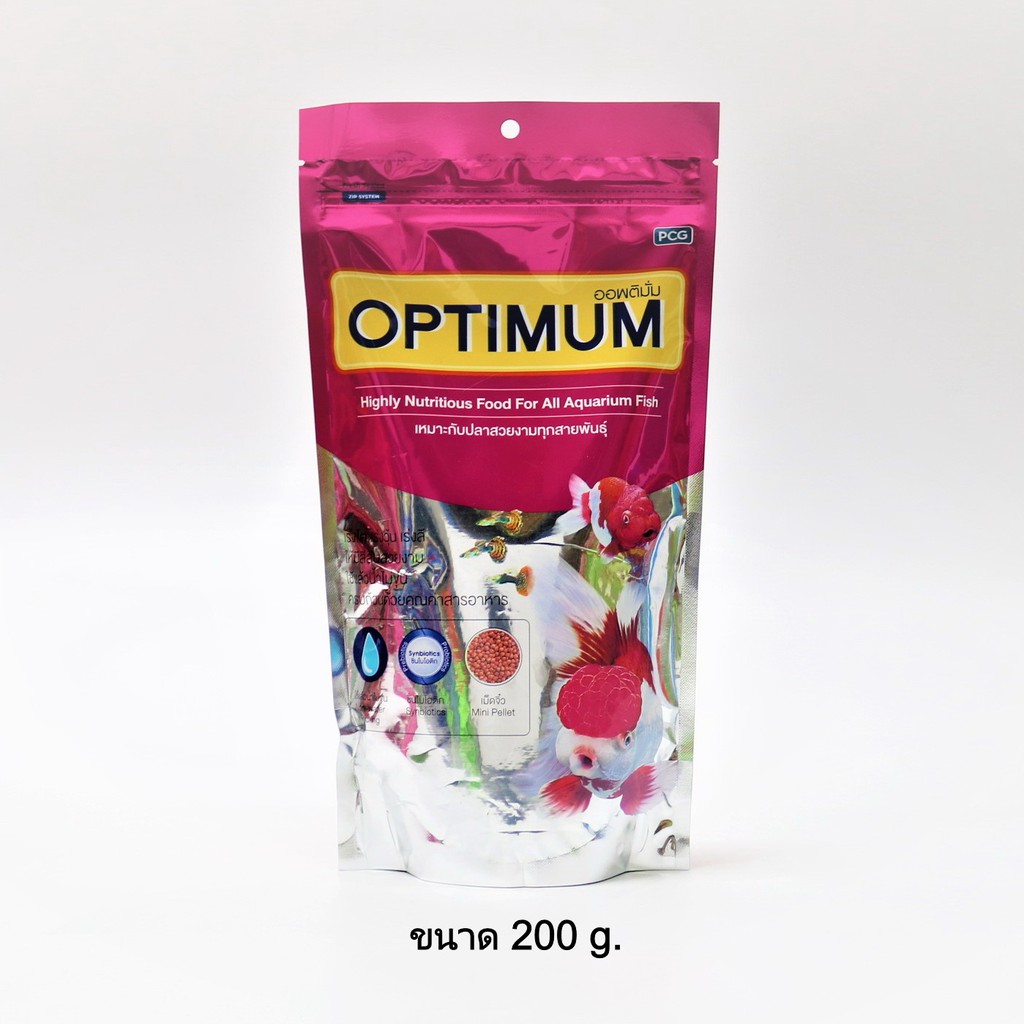 OPTIMUM 200 g. (อาหารปลาสวยงาม สูตร เร่งสี เร่งวุ้น เร่งโต ไม่ทำให้น้ำขุ่น)