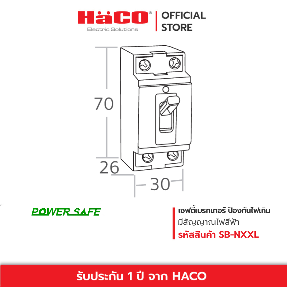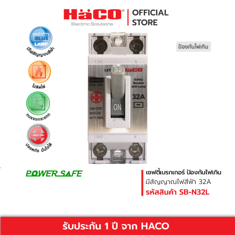 HACO เซฟตี้เบรกเกอร์ กันไฟเกิน 32A มีไฟสัญญาณ เบรกเกอร์ตัดไฟ เบรกเกอร์ป้องกันไฟ รุ่น SB-N32L