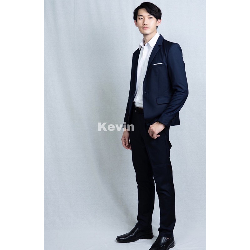 เสื้อสูทสีกรมเข้ม ชุดสูท รุ่นB19 Dark Navy suit เนื้อผ้าดีนิ่ม สวมใส่ไม่ร้อน SS-4XL สั่งซื้อแยกชิ้น