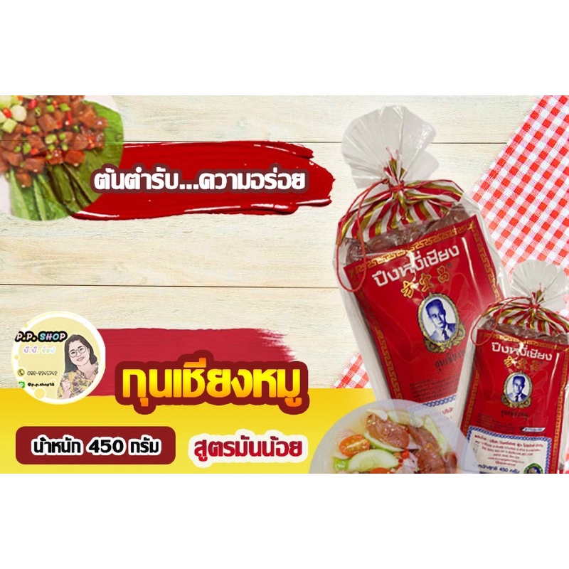 กุนเชียงหมู ปึงหงี่เชียง เชือกแดง สูตรมันน้อย มันหมู 7% อย่างดี ของแท้น้ำหนัก 450 กรัม