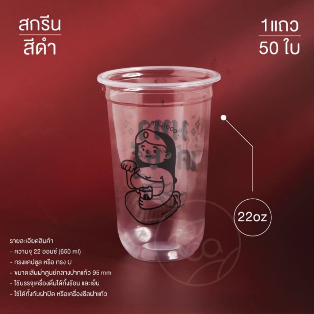 [MH22U] แก้วสกรีน แก้วแคปซูล 22 ออน์ ปาก 95 แก้วพลาสติก แก้วชานมไข่มุก แก้วPP (50ใบ/แถว) แก้วพลาสติกสกรีนลาย
