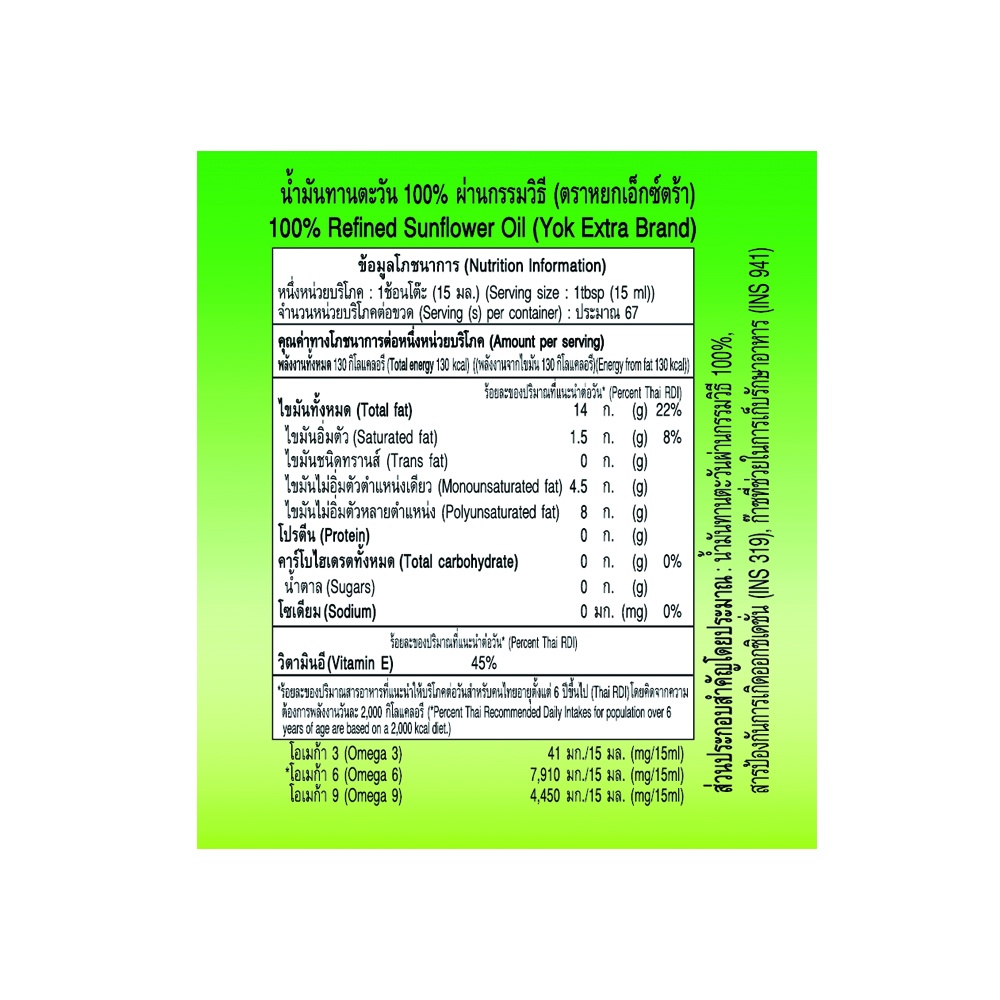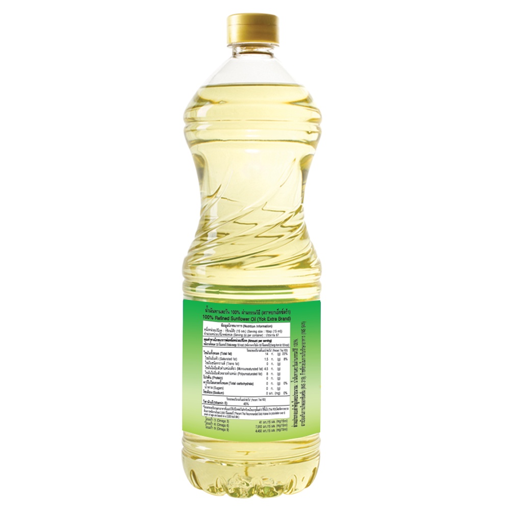 หยก เอ็กซ์ตร้า น้ำมันทานตะวัน ชนิดขวด 1 ลิตร x 2 ขวด Yok Extra Sunflower Oil 1 L x 2 Bottles