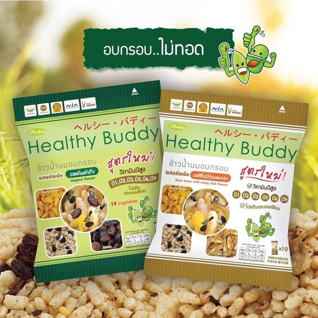 Healthy Buddy ข้าวน้ำนมอบกรอบ ผสมธัญพืช (รสซีอิ๊วญี่ปุ่นผสมปลา) บรรจุ 10 ซอง 90 กรัม
