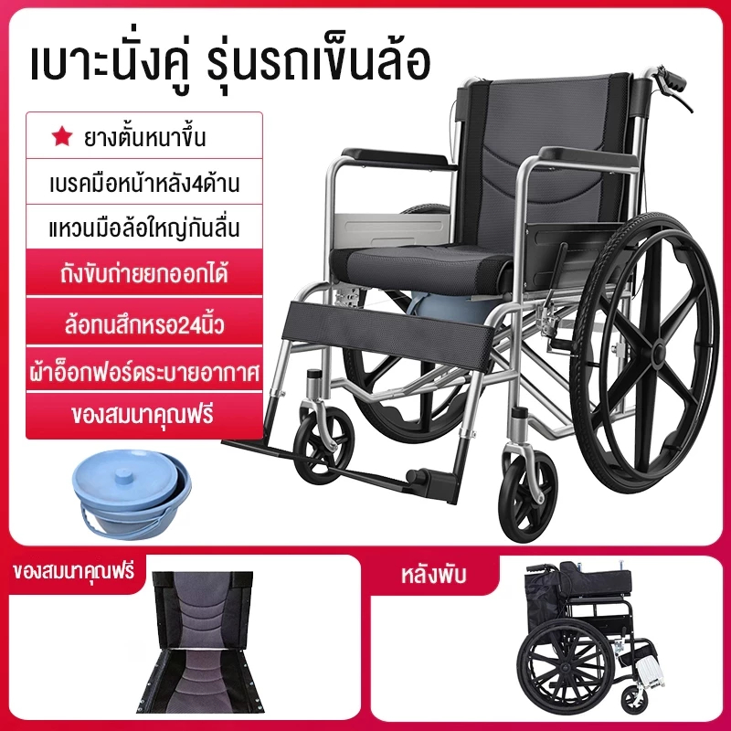 รถเข็นผู้ป่วย wheelchair รถเข็นผู้ใหญ่ พับได้น้ำหนักเบาท่อเหล็กหนาสกู๊ตเตอร์ผู้สูงอายุรถเข็นแบบพกพา รถเข็นผู้ป่วยพับได้